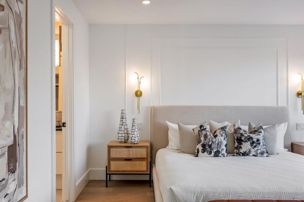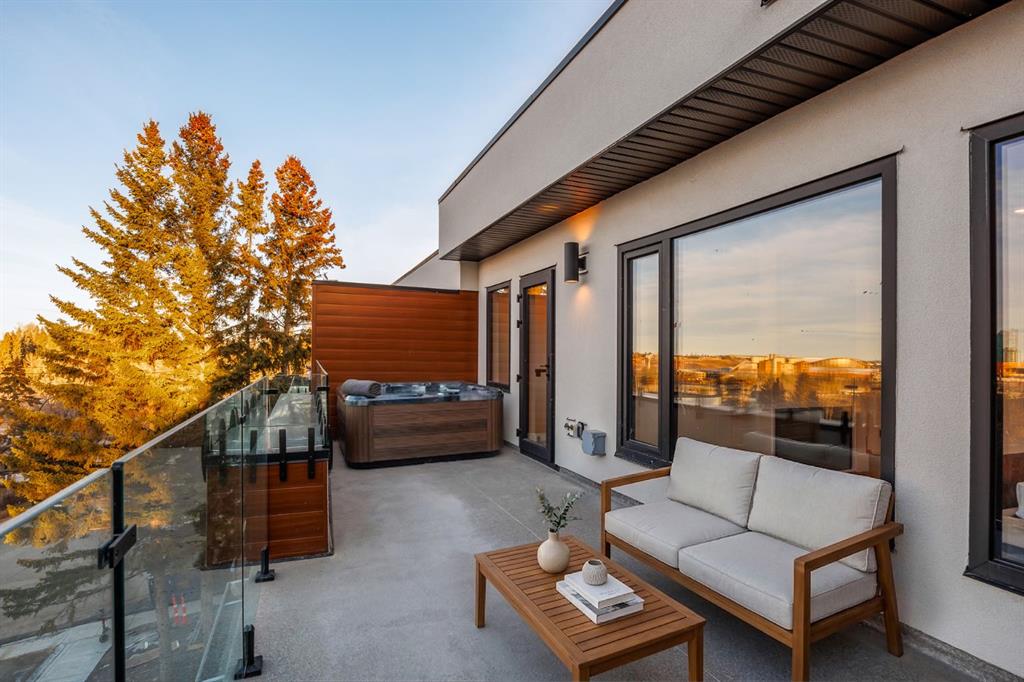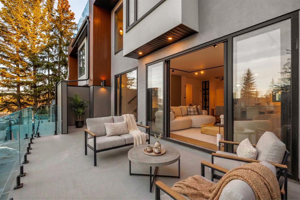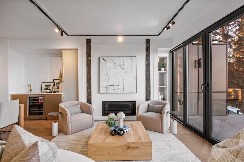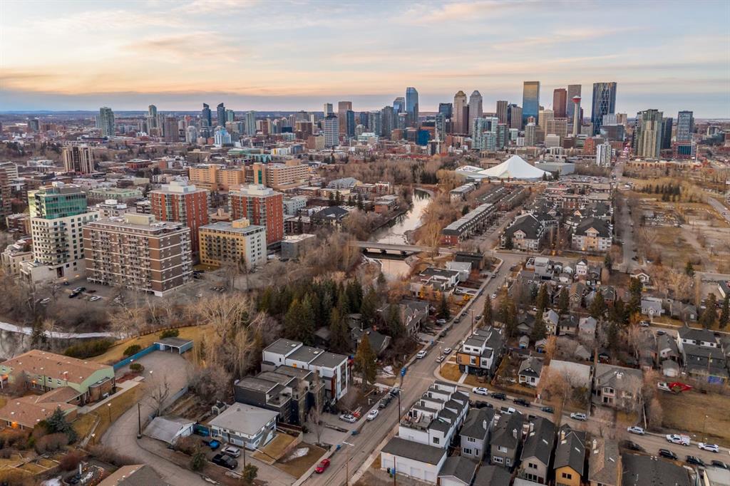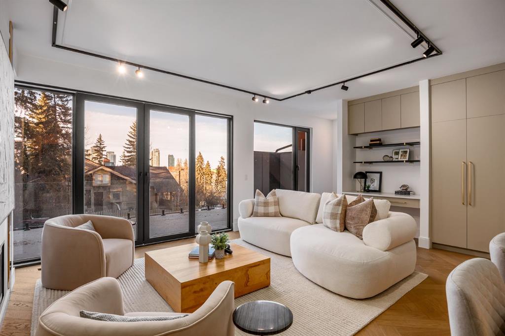Come fall in love at our Open Houses Saturday March 28th 11AM-2PM & Sunday March 29th 1PM-4PM. This three storey townhome incorporates modern-traditional interior design elements for a sophisticated and timeless aesthetic. Perched upon a hill in one of Calgary's most iconic river communities overlooking the picturesque skyline, this brand new unit is a culmination of high quality materials, thoughtful finishing selections, and grand inclusions. The attached triple car garage and private elevator are characteristic of the many luxurious additions strategically embedded within this home. The main floor layout includes a chef's kitchen with premium panel-ready appliances, dining room, living area with gas fireplace, powder room, wet bar, built-in desk area, main floor balcony with sweeping city views, and an outdoor BBQ deck at the rear. On the second level there are two bedrooms, each with walk-in closets and full ensuites, along with a large built-in laundry area with sink and shelving, and a versatile den. The third floor is occupied almost entirely by a spacious primary retreat with another gas fireplace, walk-in-closet, an attached 6 piece ensuite including a steam shower, air jetted tub, bidet, make-up vanity and in-floor heating, along with an additional wet bar, and a third level balcony (designed and loaded for a hot-tub) overlooking the city and nearby Elbow River. This intentional floorplan prioritizes comfort and convenience while maximizing utilization of space. Intricate millwork, ornate wall and ceiling mouldings, a curved, ribbed kitchen island, brush gold accents, 9 foot ceilings, and herringbone hardwood all work together seamlessly to emulate carefully curated beauty. With unrivalled cityscape views, this home is a testament to deluxe inner city living. Notable specifications include: quartz countertops, Spanish porcelain tile, engineered European Oak hardwood, custom designed casing/mouldings, designer light fixtures, LED backlit built-in bookcase, millwork built-ins, satin brass and matte black hardware, European style tilt and turn windows with ticker individual panes of glass, along with rough-in for a security system. The expansive epoxy finished garage also includes EV rough-in, a built-in closet space to be used as a mudroom, and the flexibility to convert a large portion at the rear into a home gym or workshop area in lieu of a third vehicle. This home is situated amongst the natural landscape of the river pathways and surrounded by some of the city's most notable landmarks in the peaceful community of Erlton. Quickly access the shopping and dining opportunities along 4th street, the brand new Convention Centre, Calgary Stampede Grounds, and get to the downtown core in minutes.