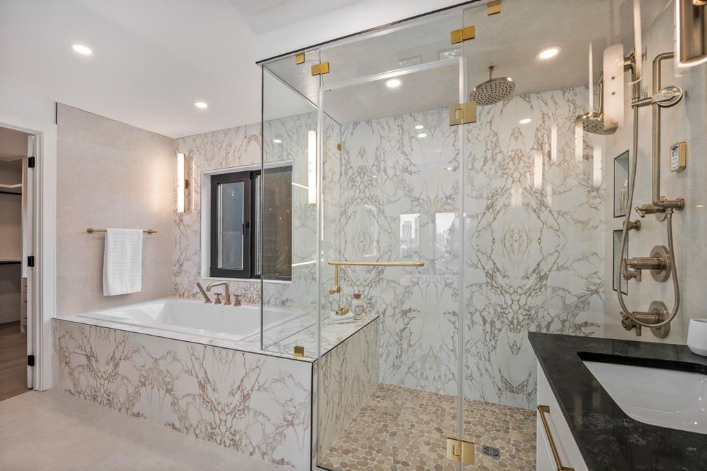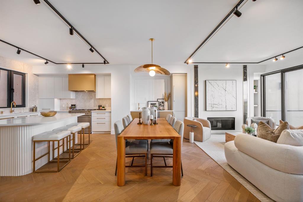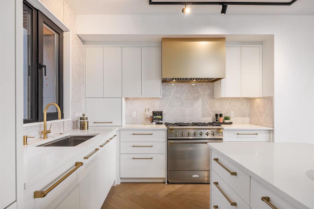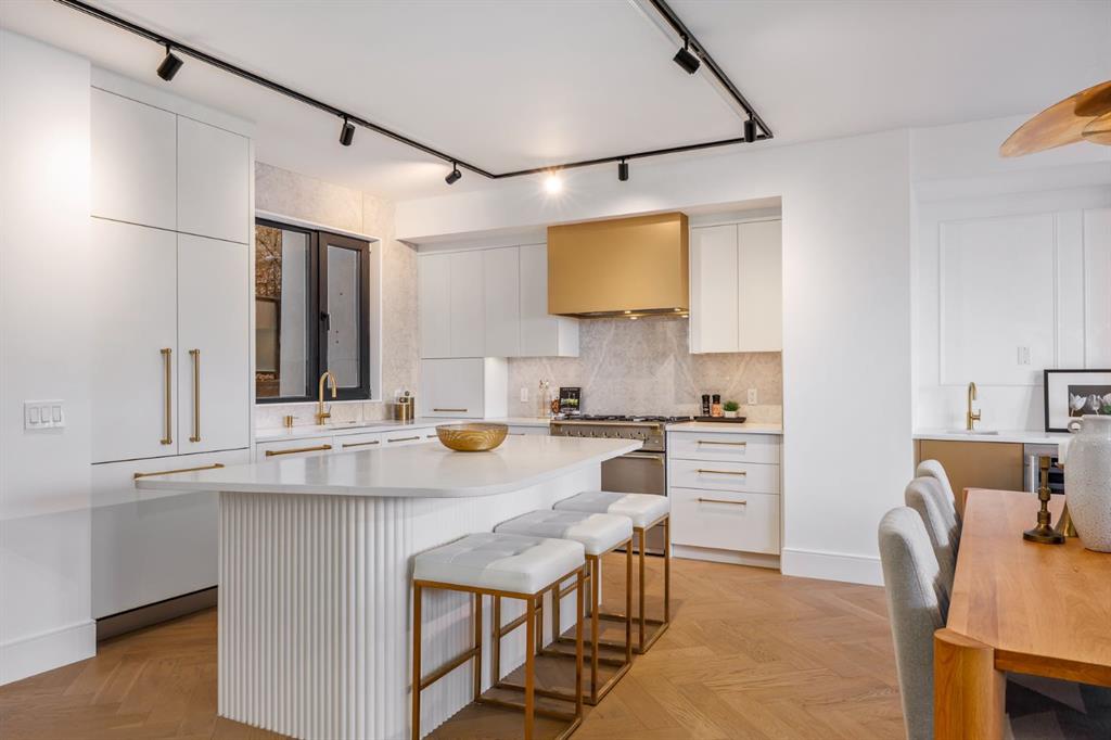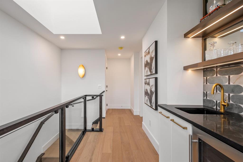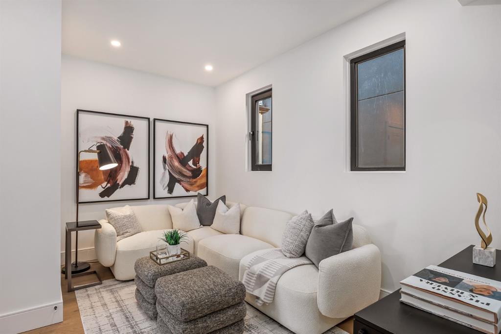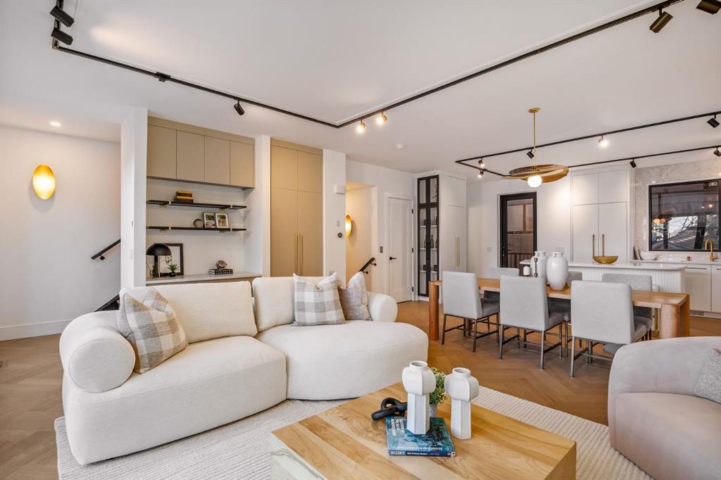 Come fall in love at our Open Houses Saturday March 28th 11AM-2PM & Sunday March 29th 1PM-4PM. This three storey townhome incorporates modern-traditional interior design elements for a sophisticated and timeless aesthetic. Perched upon a hill in one of Calgary's most iconic river communities overlooking the picturesque skyline, this brand new unit is a culmination of high quality materials, thoughtful finishing selections, and grand inclusions. The attached triple car garage and private elevator are characteristic of the many luxurious additions strategically embedded within this home. The main floor layout includes a chef's kitchen with premium panel-ready appliances, dining room, living area with gas fireplace, powder room, wet bar, built-in desk area, main floor balcony with sweeping city views, and an outdoor BBQ deck at the rear. On the second level there are two bedrooms, each with walk-in closets and full ensuites, along with a large built-in laundry area with sink and shelving, and a versatile den. The third floor is occupied almost entirely by a spacious primary retreat with another gas fireplace, walk-in-closet, an attached 6 piece ensuite including a steam shower, air jetted tub, bidet, make-up vanity and in-floor heating, along with an additional wet bar, and a third level balcony (designed and loaded for a hot-tub) overlooking the city and nearby Elbow River. This intentional floorplan prioritizes comfort and convenience while maximizing utilization of space. Intricate millwork, ornate wall and ceiling mouldings, a curved, ribbed kitchen island, brush gold accents, 9 foot ceilings, and herringbone hardwood all work together seamlessly to emulate carefully curated beauty. With unrivalled cityscape views, this home is a testament to deluxe inner city living. Notable specifications include: quartz countertops, Spanish porcelain tile, engineered European Oak hardwood, custom designed casing/mouldings, designer light fixtures, LED backlit built-in bookcase, millwork built-ins, satin brass and matte black hardware, European style tilt and turn windows with ticker individual panes of glass, along with rough-in for a security system. The expansive epoxy finished garage also includes EV rough-in, a built-in closet space to be used as a mudroom, and the flexibility to convert a large portion at the rear into a home gym or workshop area in lieu of a third vehicle. This home is situated amongst the natural landscape of the river pathways and surrounded by some of the city's most notable landmarks in the peaceful community of Erlton. Quickly access the shopping and dining opportunities along 4th street, the brand new Convention Centre, Calgary Stampede Grounds, and get to the downtown core in minutes.
