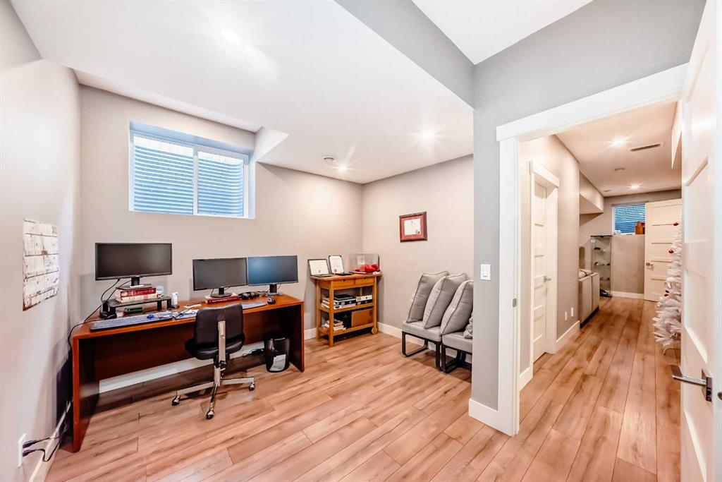 Incredible 3 storey corner townhouse in Winston Hts. If you are looking for a quality built home with loads of sq ft this is the one for you. The main floor is wide open with 9 foot ceilings, recessed lighting, gleaming laminate flooring and loads of oversized windows. The kitchen is wide open to the living area and has full height kitchen cabinets with builtin lighting, upgraded backsplash lit up with under mounting lights, beautiful white quartz countertops throughout & upgrades SS appliances. There is a huge centre island with breakfast bar, dual undermount sinks, extra storage cabinets plus the dishwasher. There is also a large corner walkin pantry with tons of storage. Off the kitchen is a good sized dining area which overlooks the living room. The living room has a central gas fireplace with tiled surround and a mounted TV. There is a walkout to a back deck/BBQ area plus access to your parking space in the detached garage. This unit uses the far right side (when looking from the alley) parking spot. The 2nd level boasts two massive bedrooms each with their own oversized walkin closets. Between them you will find a full 4 pce main bathroom with tiled floors, his n her sinks sharing a huge vanity with extra cabinets and drawers. There is a water closet that has the tub/shower plus the toilet as well. The laundry is on then2nd level as well and has full sized washer/dryer with builtin cabinets. You will love the size of the bedrooms, the walkin closets and the 8 foot high doors throughout. The 3rd level is a huge Primary Bedroom with recessed lights, knockdown ceilings, a ceiling fan and a walkout to a large balcony that overlooks the City~ beautiful unobstructed views! The balcony has glass railing & loads of space for your patio furniture. The ensuite is luxurious with deep soaker tub, oversized stand up shower, tiled floors, his n her vanities plus a massive walkin closet with builtin custom made shelving. The fully finished basement had a good sized rec room with recessed lights, knock down ceilings, laminate floors & two windows. There is a storage room which has the freezer, a handy 2 pce bathroom and the massive 4th bedroom! The utility room has a high efficient furnace, Central AC, Builtin VacuFlo and an oversized Hot Water tank.