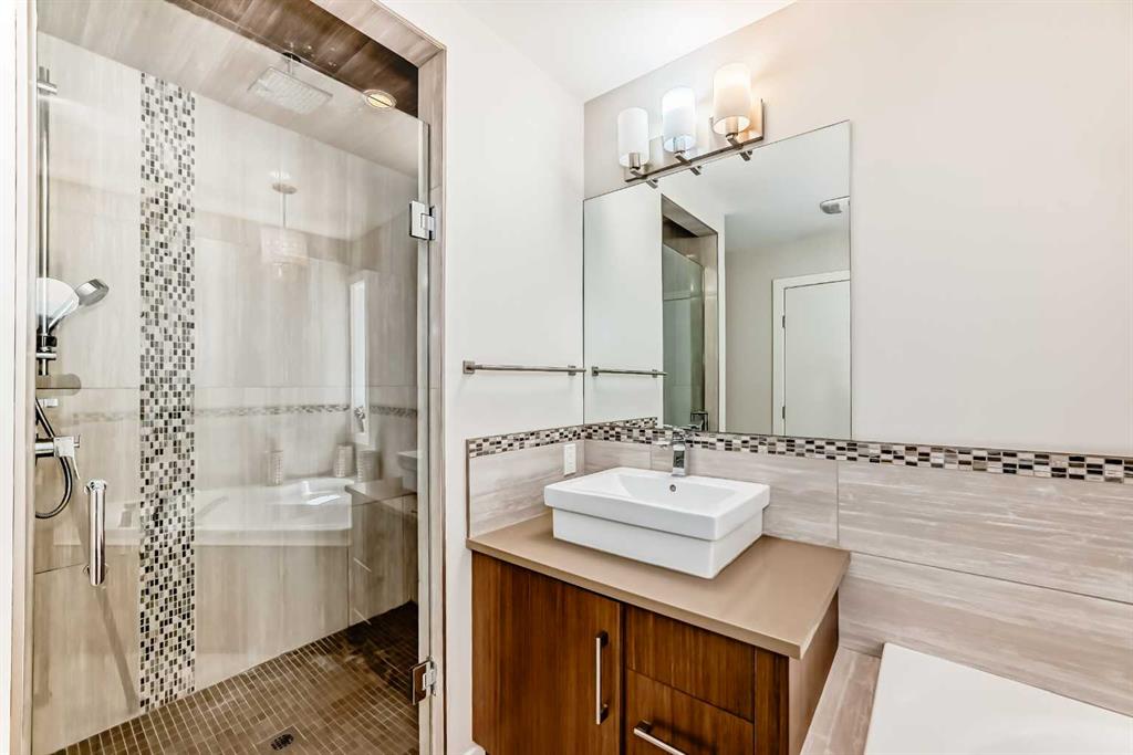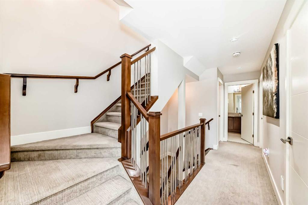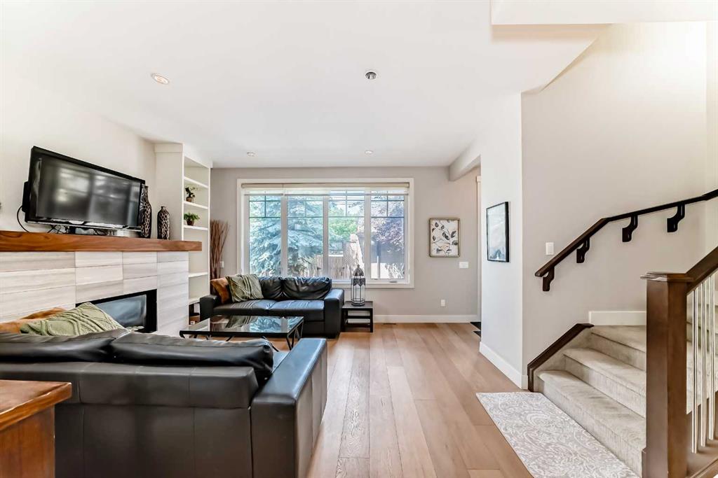 Welcome to this stunning 3-storey fourplex house, quietly nestled on a peaceful side street in the highly sought-after Kensington community. Enjoy the best of inner-city living, just steps from the Bow River, LRT, top-rated restaurants, cozy coffee shops, and the vibrant energy of Kensington Village. This exceptional home offers a total of 2,523 sq.ft. of living space (1,943 sq.ft. RMS + 580 sq.ft. developed basement) and is ideal for professionals, families, or investors. You're also perfectly situated near Downtown Calgary, SAIT, the University of Calgary, and more. The main level showcases a sleek open-concept design featuring a warm natural gas fireplace, spacious dining area, and a chef’s kitchen with premium quartz countertops, custom cabinetry, and elegant laminate flooring—perfect for both everyday living and entertaining guests. On the second level, you’ll find two generous bedrooms, including a primary suite with a walk-in closet and a luxurious 5-piece spa ensuite complete with a jetted tub. The third-floor loft offers flexible living space, including a bonus room, an additional bedroom, a full bathroom, and a large private balcony—perfect for relaxing evenings or enjoying your morning coffee. The fully finished basement features a media room, 4th bedroom, full bathroom, and plenty of storage. Outside, the professionally landscaped backyard offers a private oasis—ideal for barbecuing and entertaining on long summer nights. This home truly delivers the perfect blend of location, lifestyle, and luxury. A must-see opportunity!