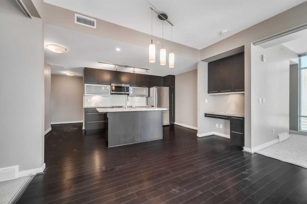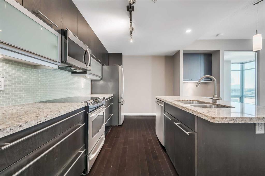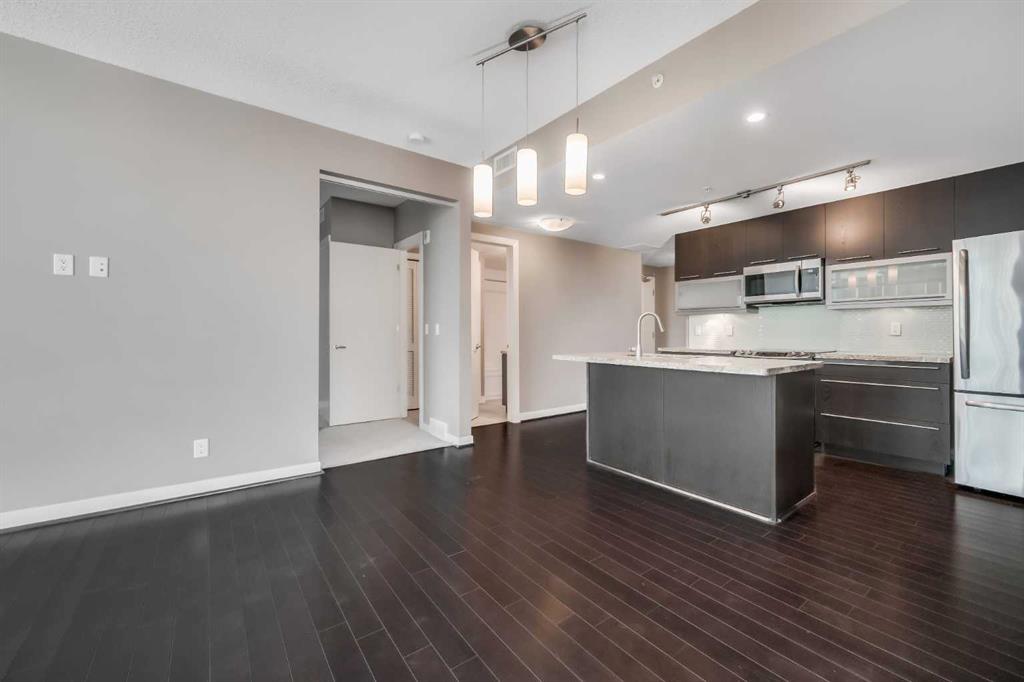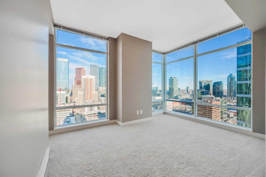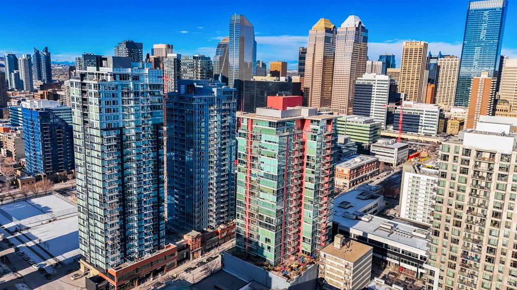 Discover elevated urban living in this gorgeous 20th-floor corner unit in the concrete Union Square building, located in Calgary’s vibrant Beltline. This 2 BED, 2 BATH condo offers a spacious layout with over 900 SQ FT, and with floor-to-ceiling windows showcasing spectacular Downtown Calgary views. The open-concept living and dining area is flooded with natural light and features rich upgraded hardwood throughout. The modern kitchen features stainless steel appliances and ample storage, ready for all your cooking needs. The generously sized primary bedroom boasts a large ensuite bathroom, while the second bedroom and full bathroom provide privacy and convenience, ideal for guests or a home office. Additional highlights include in-suite laundry, a private balcony, heated and titled underground heated parking, and additional dedicated storage locker. Central A/C! Just a few short blocks from Calgary’s downtown core, this unit places you steps from some of the city’s best restaurants, cafes, and amenities. Enjoy easy access to green spaces, bike paths, convenient routes in and out of the city, and nearby landmarks including Stampede Park, the Saddledome, and the LRT—perfectly blending comfort, style, and urban convenience. You don’t want to miss this one! Union Square sits nestled in between restaurants and shops in a mini entertainment district on 1st St SW.