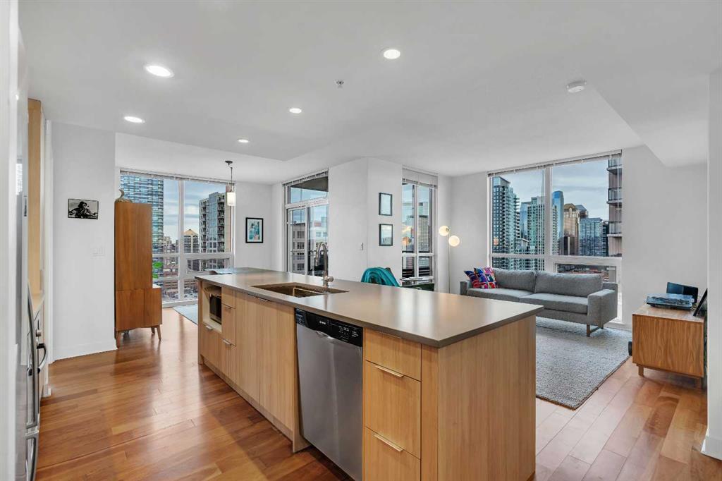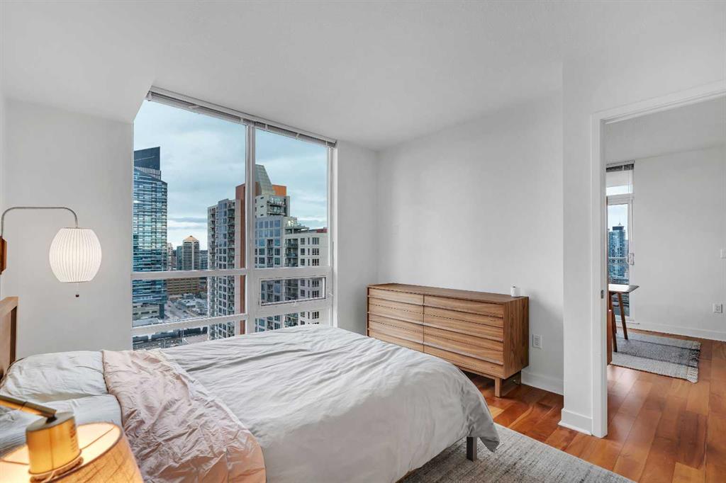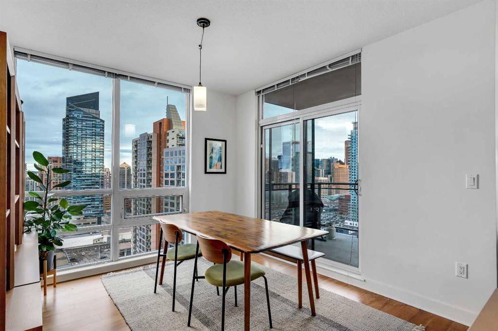 2 BED + 2 BATH + DEN | UNOBSTRUCTED VIEWS | CORNER UNIT | EXTRA LARGE PARKING STALL | LARGE IN-SUITE STORAGE | Experience breathtaking views of downtown and the Bow River from this exceptional 20th Floor corner unit in Nova. Boasting 2 bedrooms and 2 bathrooms, this space is one of the largest 2 bedroom layouts available and features an inviting open concept floor plan complimented by a contemporary kitchen with a large center island, quartz countertops, stainless steel appliances with a gas range and a dedicated dining area, or perfect home office space. Enjoy an abundance of natural light that floods the living room and both bedrooms through the floor to ceiling windows. The primary bedroom is complemented by a generous walk through closet and a luxurious 5 piece en suite and features unobstructed views of downtown. The sizable second bedroom also features great views and plenty of room for a guest suite. Residents can take advantage of the exceptional amenities, including a fitness facility equipped with separate men’s and women’s steam rooms, an owners’ lounge with a wet bar, a 24 hour concierge, guest suites, and heated underground parking. Ideally situated, this building is within a short walking distance of all the restaurants, pubs, shops, and parks on 17th Avenue, Prince’s Island Park Eau Claire, and a 5 minute walk to the C train, along with a grocery store that is conveniently located just a few blocks away. Whether you’re looking for a new home or a great investment property, this unit is a must see, schedule your showing today!