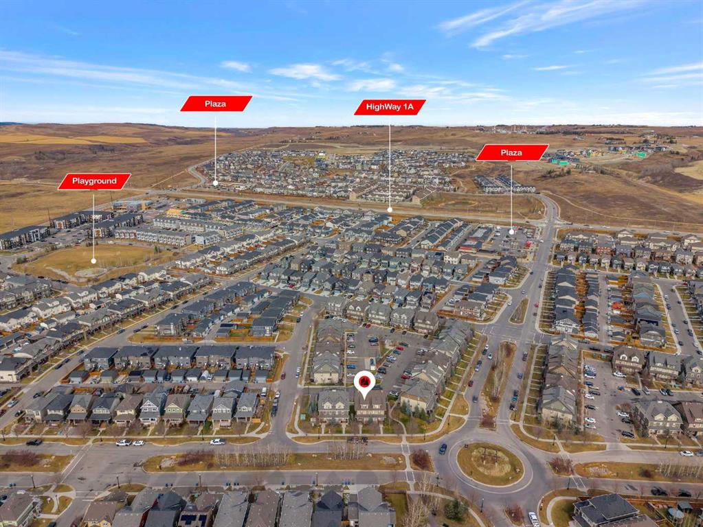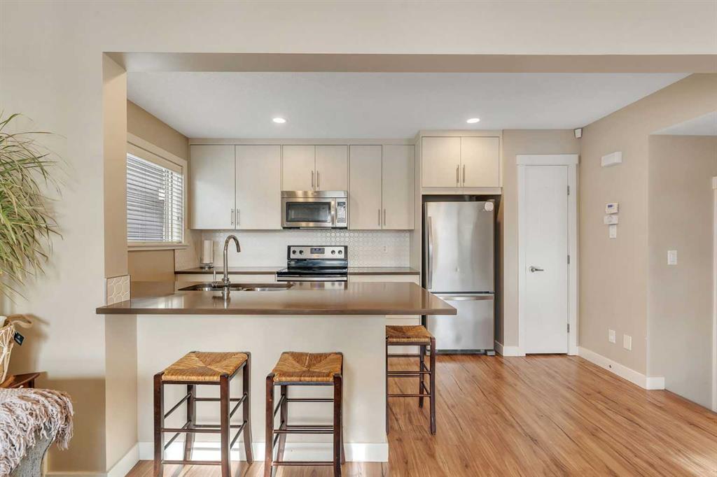 A beautiful townhouse located in one of Cochrane’s best communities Heartland. This home stands out with its charming front porch and eye-catching elevation across all three levels, giving it a unique and inviting presence. As you walk in, you are welcomed by a spacious foyer featuring ceramic tile flooring and a large closet. The main floor offers a bright dining area and a cozy living room filled with natural light from the large windows. The entire level is finished with luxury vinyl plank flooring for a clean and modern look. The fully upgraded kitchen is a true highlight, featuring extended cabinetry up to the ceiling, a stylish milky backsplash, quartz countertops, stainless steel appliances, double sink, pot lights, and a large window. A great-sized pantry completes this functional and beautiful kitchen. Just a few steps down, you’ll find a half bathroom and access to the massive unfinished basement. The basement, including the laundry area, is ready for your personal touch to create additional living or entertainment space.