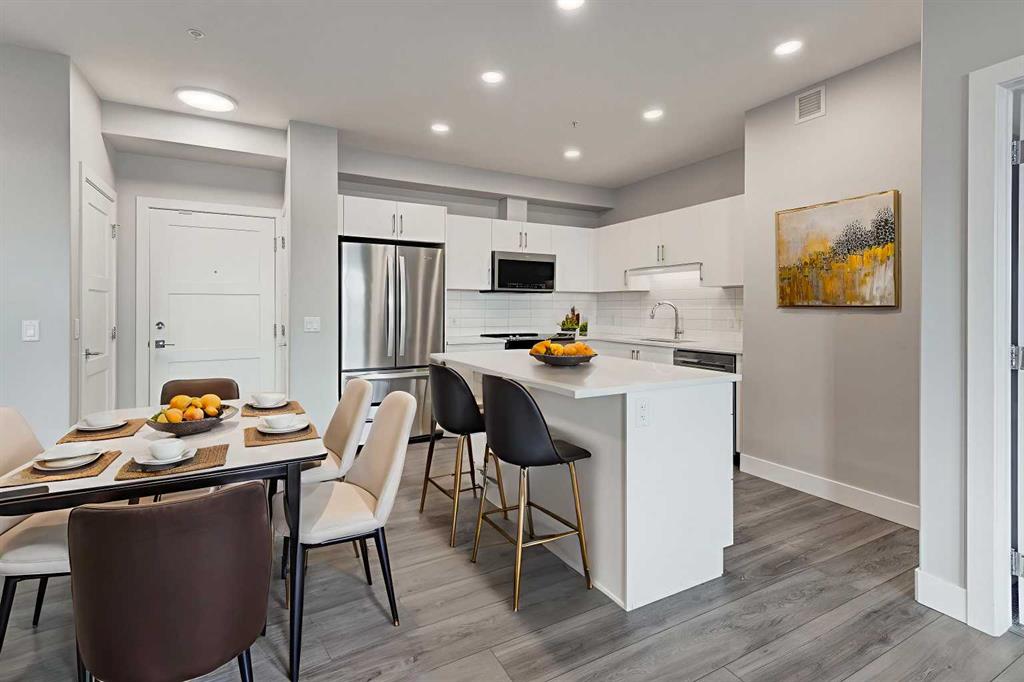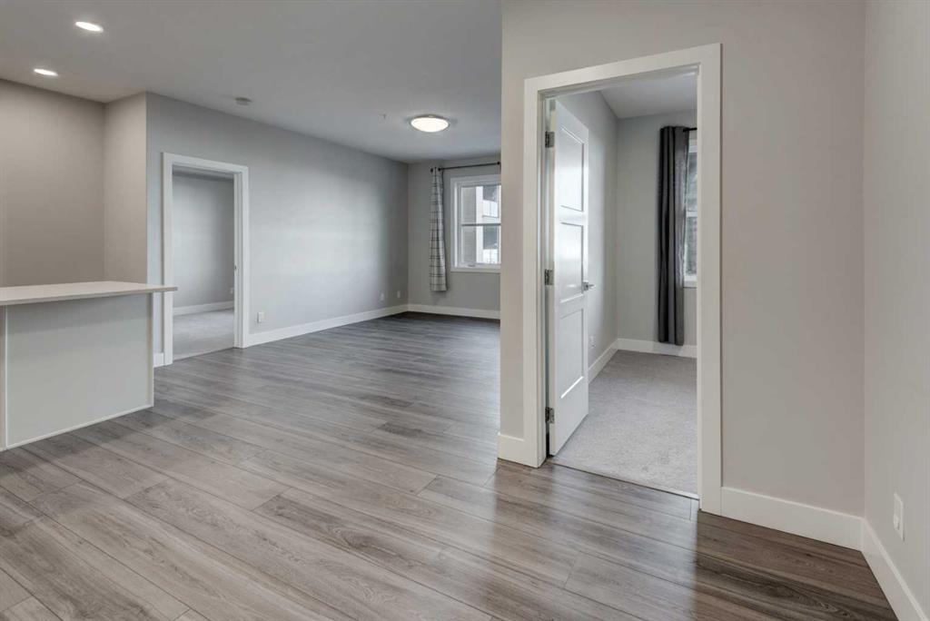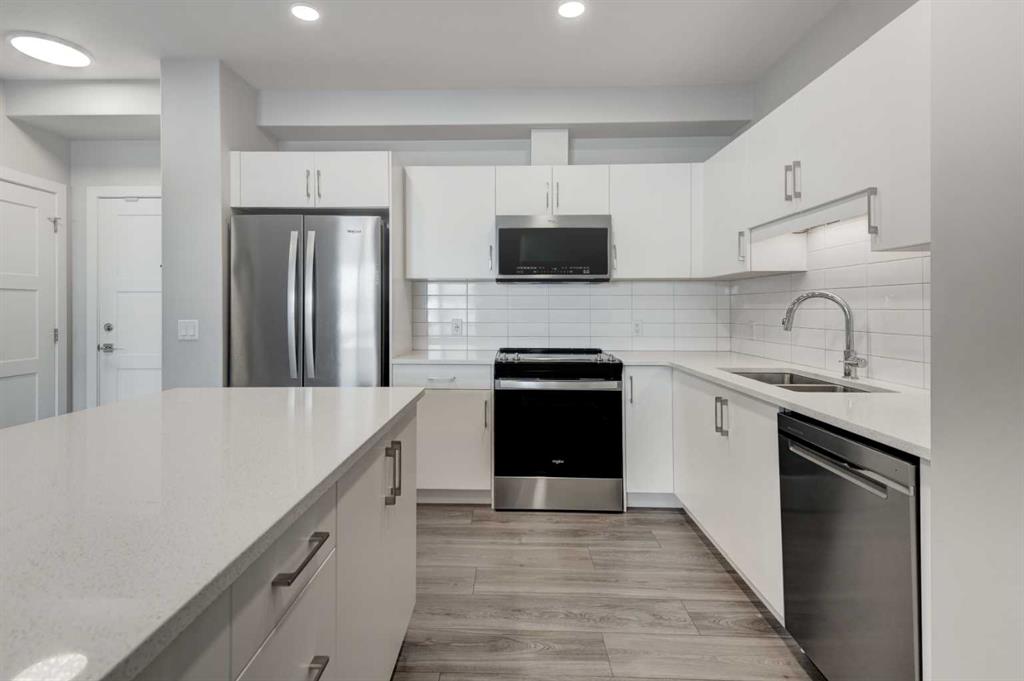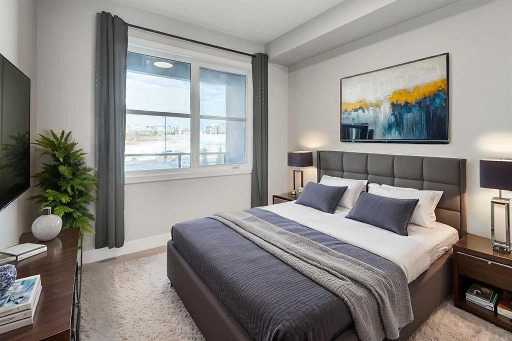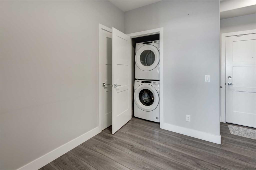 Don’t miss out on this 2023-built unit—it still looks brand new inside. It is perfect for a first-time buyer or investor. This unit has only one neighbouring side and features an open-concept floor plan with 9 ft ceilings. The spacious living room comfortably fits a full-size couch, and a patio door leads out to the deck. The modern, bright white kitchen includes QUARTZ countertops, ample cabinet storage, a centre island, and stainless steel appliances. There are two good-sized bedrooms. The primary bedroom includes a walk-in closet and a 3-piece ensuite. The second bedroom also has a walk-in closet and direct access to the 4-piece bathroom. In-unit washer and dryer included. The titled underground parking stall is large enough for an SUV, The assigned storage room is the largest one in the building, and the owner paid $5,500 for it. Walking distance to Aspen Landing Shopping Centre, and only a 5 minute drive to the 69 St C-Train station, Rundle College, the well-known Griffith Woods School (K–9), and Ernest Manning High School.