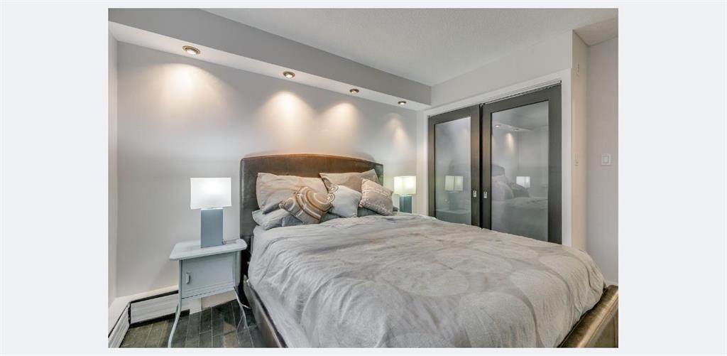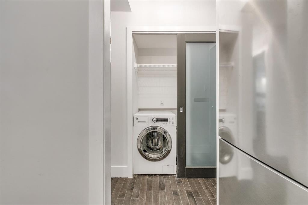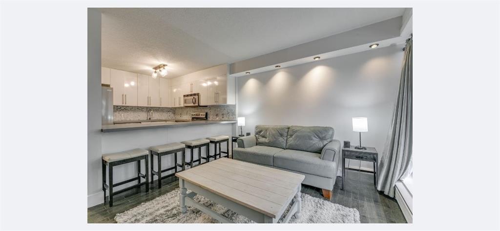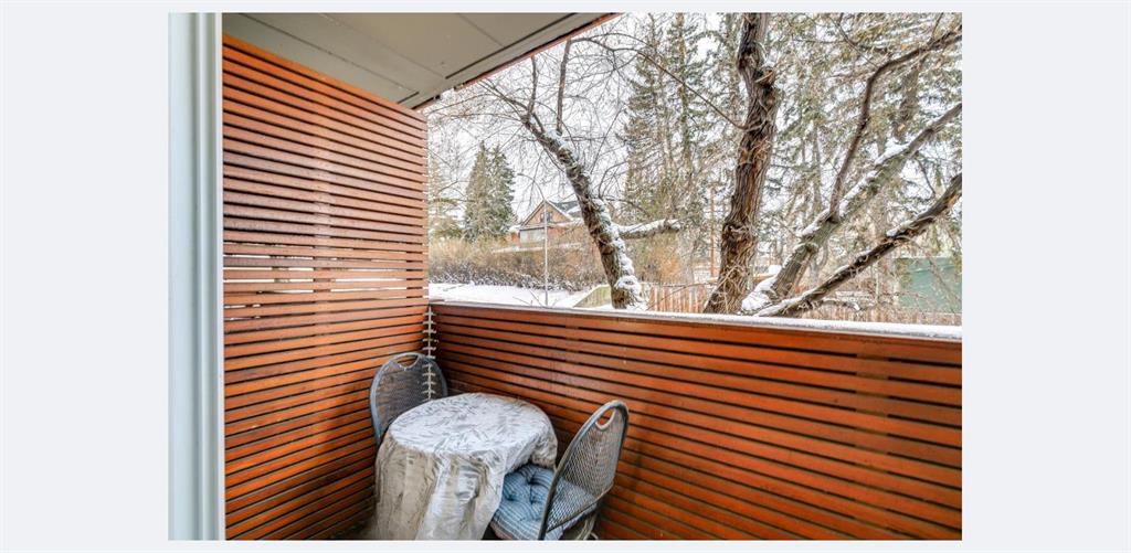 This one bedroom, one bathroom condo is in CONCRETE building with a healthy reserve fund. Located on a charming, tree-lined street in the heart of Lower Mount Royal, this well-designed condo delivers the walkable lifestyle everyone wants. Just two blocks from vibrant 17th Ave SW and steps to the #2 bus route, you can leave the car parked and save the commute stress for someone else. The living room features expansive WEST- facing windows that open to a well sized balcony—perfect for a BBQ and lounge seating. Mature trees create natural privacy and shade, making it a true outdoor extension of your living space. The kitchen is smartly configured with ample cabinetry, full-height uppers, a breakfast bar and stainless-steel appliances, (NEW FRIDGE in 2025) and recently REFINISHED COUNTERTOPS and NEW BACKSPLASH. The bedroom includes a large walk-in closet and a sliding privacy-glass door.Hardwood floors and recessed lighting run throughout, with NEW TRACK LIGHTING recently installed. You’ll also appreciate the in-suite European washer plus extra storage. The building is concrete, equipped with an elevator, secure bike storage and shared laundry, and does not permit short-term rentals, keeping things peaceful for residents. An assigned parking stall is included, and the area qualifies for residential street parking permits for just $45/year. Quick access to Downtown, the Beltline, U of C, Mount Royal University, Stampede Park and the new BMO Event Centre. With condo fees less than $360 this unit is sure to impress.