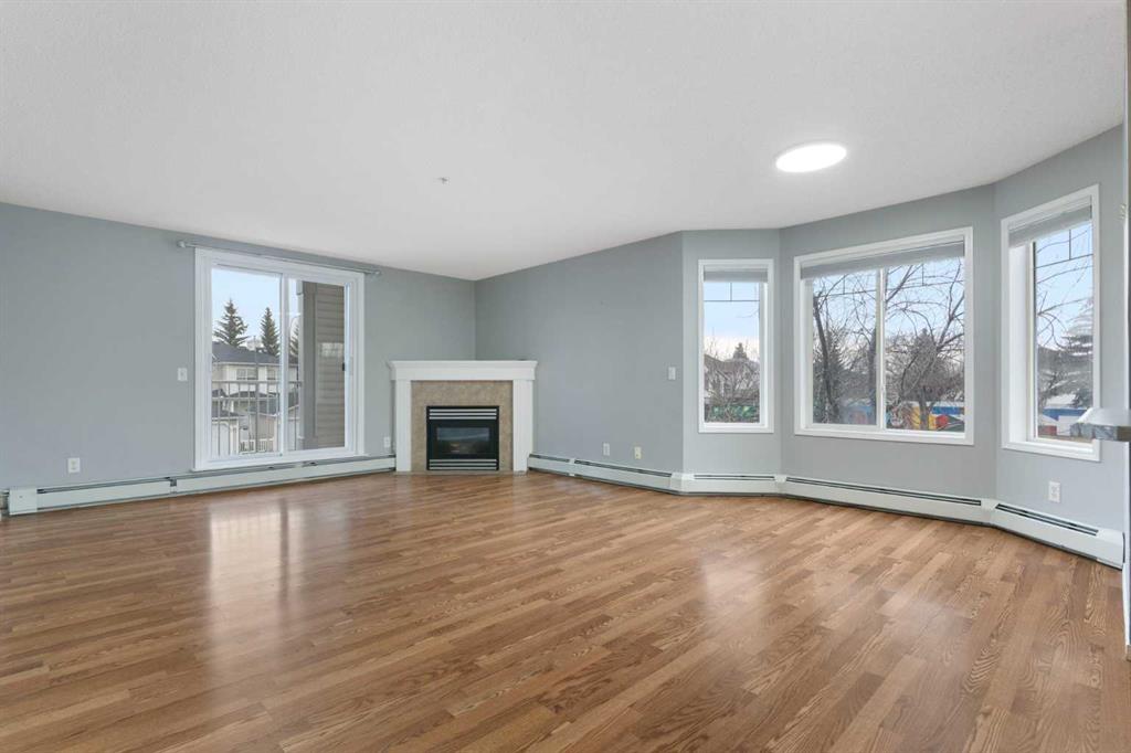 Discover unparalleled brightness and space in this MAGNIFICENT, large 2-BEDROOM, 2-BATHROOM CORNER UNIT, perfectly designed for sophisticated urban living in the COMMUNITY OF COUNTRY HILLS VILLAGE. Step inside and be immediately greeted by the flood of natural light pouring in from oversized windows on one side and a large glass patio door on the other, illuminating the expansive, open-concept living area. This generous space, seamlessly integrating the living, dining, and kitchen areas, is ideal for both quiet relaxation and impressive entertaining. Cozy up on chilly evenings by the elegant gas fireplace, a warm focal point of the room. The Beautiful Kitchen has tons of storage cabinets and drawers, a window over the sink and a convenient island for additional sitting and counter space. Both Bedrooms are generously proportioned with the Primary suite offering a private 3-piece ensuite and ample closet space. There is an additional 4-piece bathroom, a large In-Suite laundry room with built in shelving, a good size coat closet and additional external storage room. This rare gem offers a unique blend of space, light, and functional design. Don't miss this opportunity to call it home. Location is close to the Shopping Plaza with grocery stores, restaurants, pharmacy as well as city transportation, playgrounds, schools, Vivo Rec Centre, Landmark Cinema, etc. Quick and Easy Access to Deerfoot Trail.