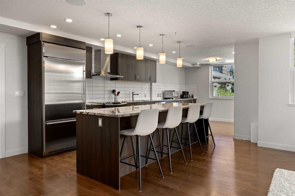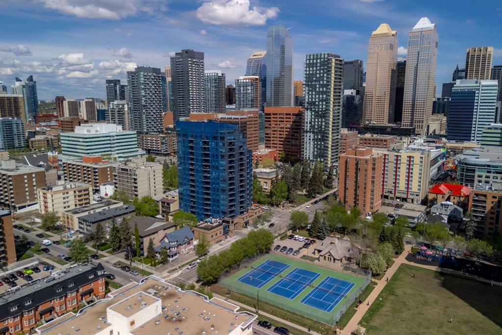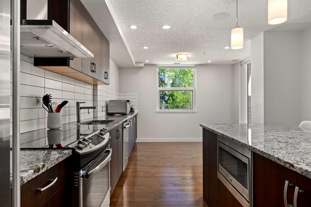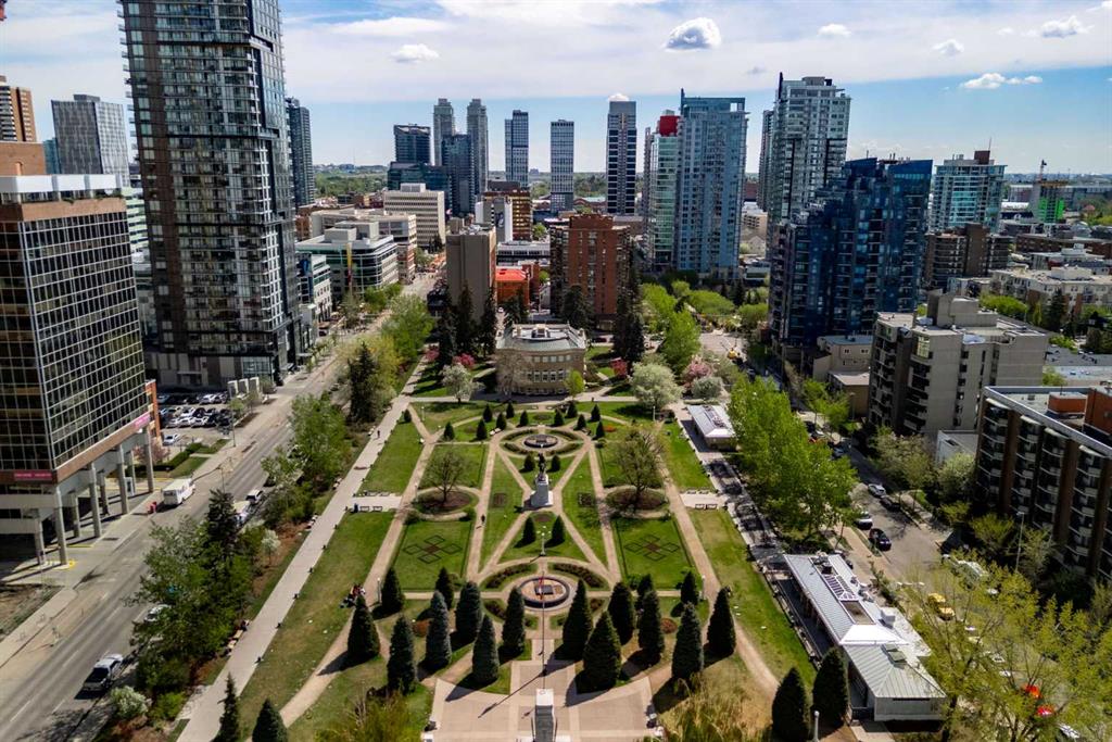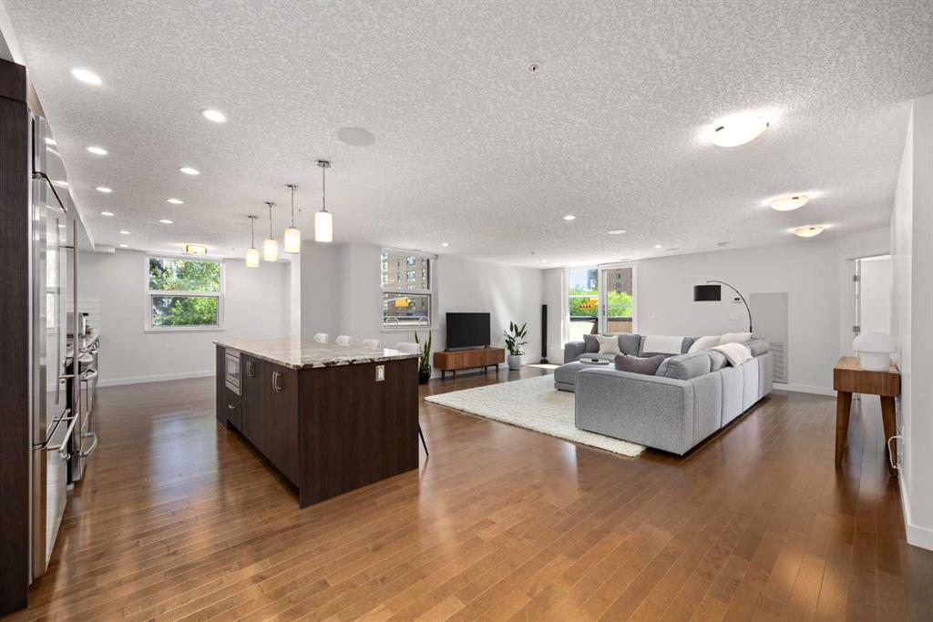 Experience refined luxury in the heart of the beltline overlooking Central Memorial Park. This sprawling floor plan lives more like a house and less like a condo, with two private terraces, and an abundance of luxurious upgrades that are sure to satisfy even the most discerning buyers. Ideally located, with Calgary’s vibrant entertainment scene, fine culinary experiences, and the downtown core all within a short walking distance, yet peacefully surrounded by the foliage and tranquility of the park. Beautiful mahogany hardwood flooring is complemented by stainless steel appliances and granite countertops flowing throughout the expansive open concept kitchen and living room. The magnitude of square footage offered is a rarity, and provides an exceptional layout including two spacious bedrooms and a den, perfect for those seeking more space while remaining central. The primary retreat offers a walk-in closet suitable for any sized wardrobe, and a lavish five-piece ensuite with heated tile floors. Guests can visit in comfort with the second bedroom providing its own ensuite and walk through closet, or for an elevated level of privacy, rent one of the guest suites offered by the building. Enjoy warm summer nights entertaining out on one of the two private terraces as the palpable energy of the city bustles below. Central Air Conditioning provides year-round comfort, and built in speakers provide the soundtrack to your daily life. Additional amenities include two titled parking stalls with a storage cage, building concierge, a fitness centre, bike storage, a rooftop patio with a community garden, and a social room. Take advantage of this exceptional opportunity to own a very unique residence in one of Calgary’s most desirable downtown locales.
