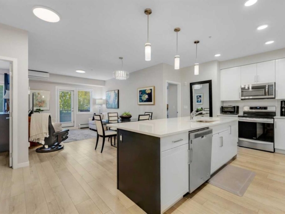 The kitchen features granite countertops, stainless steel appliances, and ample cabinetry, flowing seamlessly into the dining and living areas. The primary bedroom includes a large closet and a private 4-piece ensuite, while the second bedroom and full bath provide excellent space for family, guests, or a home office.