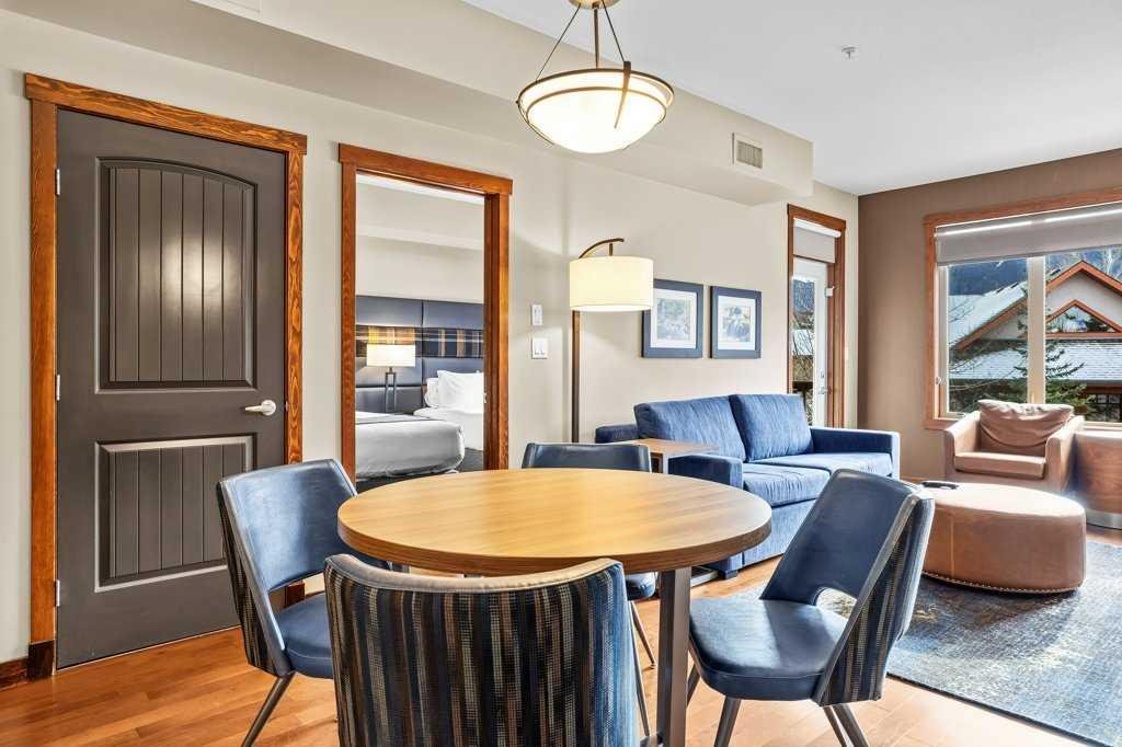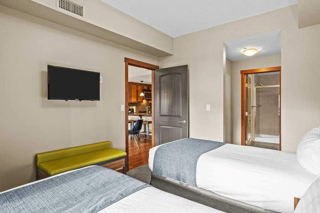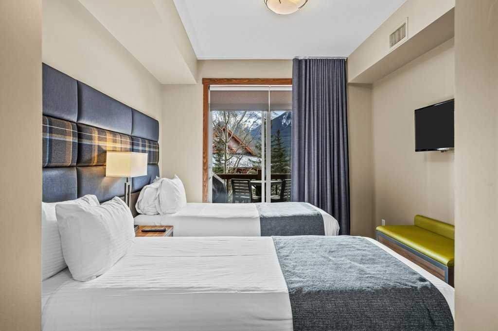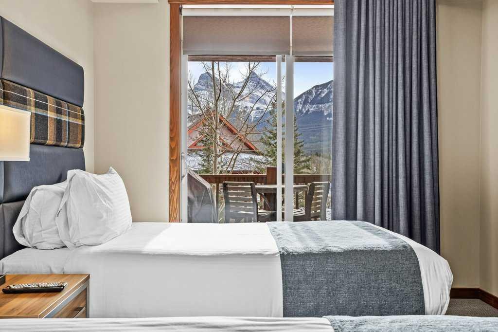 Discover mountain luxury at the highly coveted Stoneridge Mountain Resort! This stunning 2-bedroom, 2-bathroom unit captures the essence of Canmore with refined upgrades and high-quality furnishings throughout. The spacious open layout is bathed in natural light, perfectly framing massive, unobstructed views of the iconic Three Sisters. Enjoy the sought-after south-facing exposure and step onto your private balcony to take in the breathtaking scenery. Stoneridge is renowned for offering the very best outdoor heated pool in town—an irresistible highlight for owners and guests alike—along with a relaxing hot tub, fitness center, and secure underground parking. Exceptionally well-maintained and located just minutes from downtown Canmore, this luxurious mountain retreat delivers an unparalleled combination of elegance, comfort, and investment potential in perhaps Canmore’s most premier resort. NOTE: The list price is subject to GST; consult with a tax professional for advice on GST deferral options.