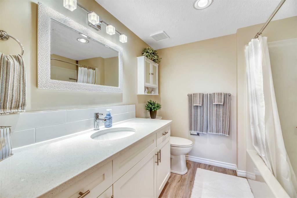 Step inside and you’ll immediately notice the thoughtful updates throughout: newer luxury vinyl plank flooring, fresh paint, stylish lighting, quartz countertops, updated hardware, a chic backsplash, and a full suite of stainless-steel appliances. The primary bedroom features dual closets leading to a beautifully upgraded ensuite with quartz counters, new fixtures, and a modern tub/shower combo. The second bedroom sits next to the equally refreshed main bath—perfect for guests or a hobby space.
