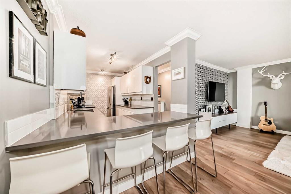 Get ready to fall in love! Absolutely STUNNING home! FULLY RENOVATED HOME! Sunny South Facing Home | End Unit | One of the few complexes in this area WITHOUT Post Tension Cables. Proudly welcoming you home to Manor House – this well-cared for, well managed complex features this STUNNING 2-bedroom home that has been transformed and modernized, in the desirable Beltline neighbourhood – just steps away from all the action! Your new home is ideally tucked away in a quiet corner. Inside you will instantly appreciate the new beautifully elegant luxury vinyl plank flooring throughout the home which matches the modern décor throughout. The home features exceptional updates and upgrades throughout, which start out in the striking kitchen. The kitchen has been completely renovated, highlighted by all-new cabinetry and stunning Quartz gun metal grey countertops, with undermount sink. Counter level seating awaits, perfect for visiting with friends and family as you entertain from your exquisite gourmet kitchen. Updated SS appliances await. There is ample space for a deep freeze IN your kitchen, without losing any counter or cupboard space! Just off the kitchen is a large dining room, which can easily host a sizable dining table. This home features beautiful crown moulding throughout; as well as beautifully updated lighting throughout. The large stunning living room is an exceptional space, large enough to accommodate all of your furniture, providing plenty of space to relax or provide the ideal space to entertain friends and family! The tour continues with 2 large closets, and an updated & stunning 4-pc bathroom. The Primary bedroom is one of the largest you will find – hosting a King size bed, dresser and nightstands with ease, while still allowing for ample space leftover. The Primary closet features custom built-ins, easily organizing your wardrobe. The secondary bedroom is of excellent size and is the ideal place to host your home office, guest bedroom or use as a Yoga space! Updated vinyl windows allow your home to be energy efficient year-round! The large (11.5x 5 ft) balcony is ready for your enjoyment – offering endless sunshine with a sunny south facing view, perfect to enjoy in the warmer months! There is FREE laundry located on every floor of this superb building. Your new home comes with one assigned secure parking stall + additional storage locker for your items you don’t use every day. There is so much to love about this unique home including its location! A true 'walker’s paradise' with a walk score of 99/100 – it doesn't get any better than this! You can walk or bike easily to work, and take in and enjoy the multitude of local shops, restaurants, pubs, grocery stores, and so much more!