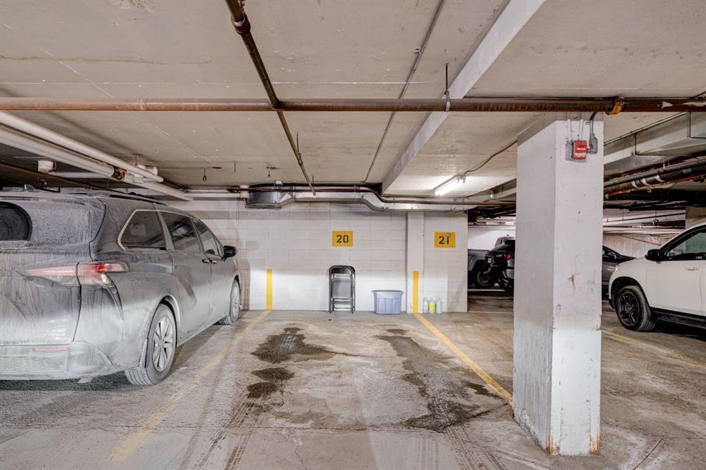 Why rent when you can own in Marda Loop? This spacious 2-bedroom condo is ideally located in the heart of Marda Loop, one of Calgary’s most sought-after and evolving neighbourhoods. The home offers a functional layout with a kitchen featuring dark shaker-style cabinets, stainless steel appliances, granite countertops, and a raised eating bar. The large primary bedroom comfortably fits a king-size bed and includes a walk-in closet, while the second bedroom is versatile — ideal as a home office, guest room, or additional bedroom with its own generous closet. The bathroom features a deep soaker tub, and with in-suite laundry, a titled heated underground parking stall, and plenty of storage, this unit provides easy, comfortable living.