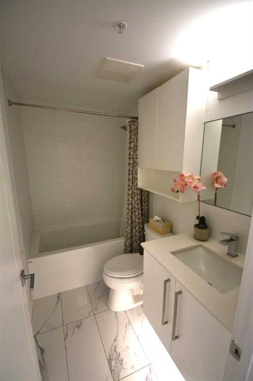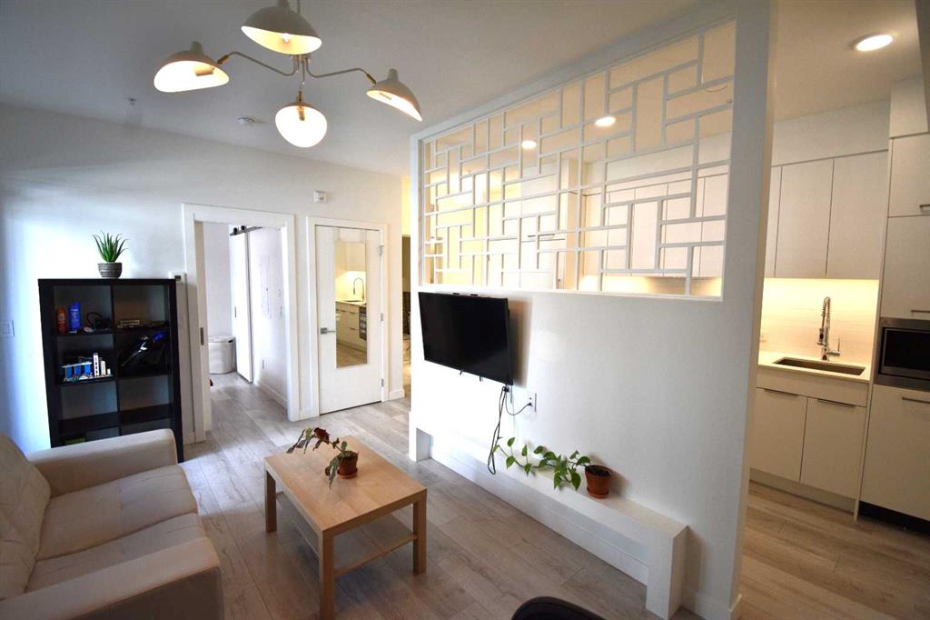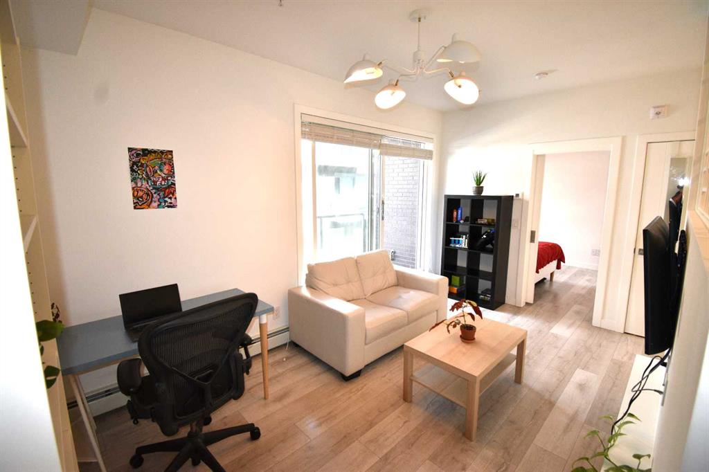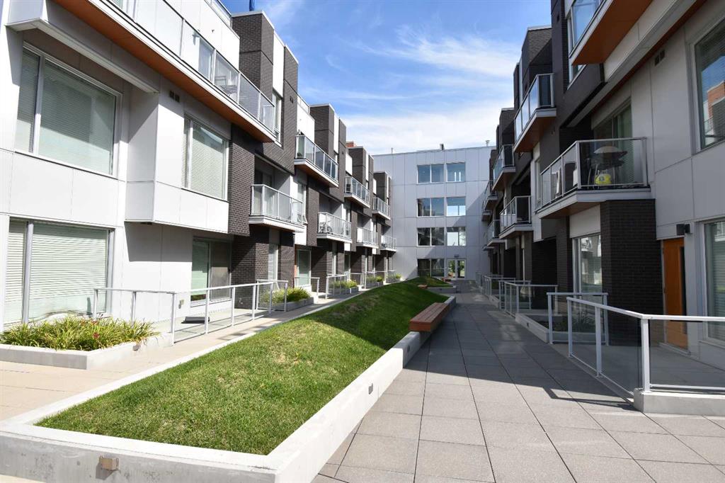 Welcome to the Noble, located in the heart of the University District. This stunning 1 bedroom, 1 bathroom home offers laminate and tile flooring a modern contemporary style with open concept layout. The bright white kitchen features quartz countertops, ample cabinet and counter space, a full height backsplash, breakfast bar & upgraded appliances. Enjoy an abundance of natural light in the spacious living room with large sliding glass doors leading out to a private covered balcony where you can enjoy your morning coffee, Don't miss the natural gas line for the BBQ. The primary bedroom features barn doors and a walk-in closet,. Rounding off this beautiful home is a 4 piece bath with in-suite laundry. Just a short walk or bike ride to The University of Calgary, Alberta Children’s Hospital, Market Mall nd the Foothills Hospital. Enjoy the many amenities that the University District has to offer including retail districts, open spaces/parks & biking & walking trails. This unit also includes 1 titled, secure, heated underground parking stall and access to two rooftop patios. Don’t miss out! Call today for more information or to schedule a private showing!