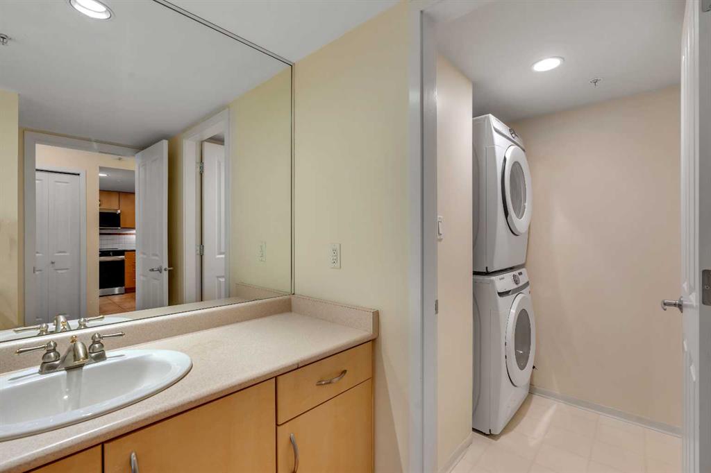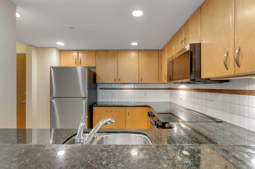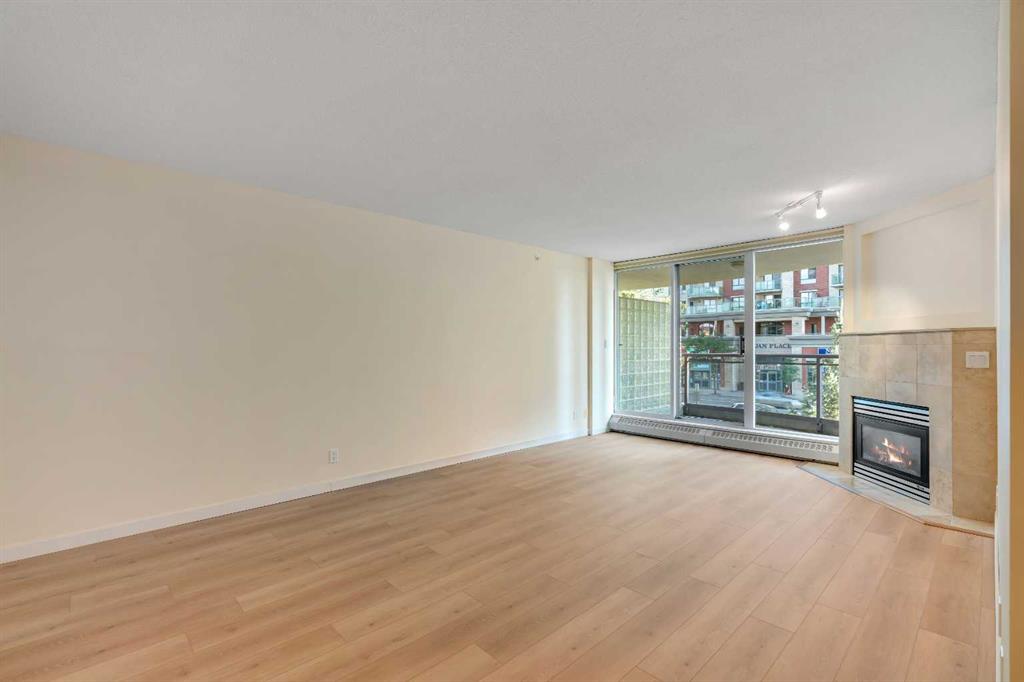 MASSIVE 823 SQ/FT UNIT | FRESHLY RENOVATED | STEPS TO BOW RIVER PATHWAYS + PRINCE’S ISLAND PARK | Welcome to The Marquis on 6 Ave SW, located in one of the best areas of West Downtown, within walking distance of everything including Eau Claire, Prince’s Island Park, Bow River Pathways, and just a quick stroll to the office. This massive one-bedroom unit has just been updated with brand new flooring, fresh paint, and new appliances throughout, making it a turn-key opportunity for the downtown condo buyer. Whether you’re a first-time home buyer or a savvy investor, this could be a wonderful unit for you. As you enter the unit you’ll notice a tremendous amount of natural light with the south exposure, extending onto a large sun-soaked patio. The unit features new stainless steel appliances, beautiful new vinyl flooring, and fresh paint throughout. The large kitchen with breakfast bar offers plenty of space to host friends and family, while the spacious living and dining area provides ample room to relax and watch a movie around the cozy gas fireplace, or enjoy a glass of wine on the patio. The large bedroom features another south-facing window, a generous walkthrough closet with access to the 4-pc bathroom, and a large in-suite laundry room. This unit comes with titled underground parking (very close to the stairs), a separate storage locker, and bike storage. The building itself features security personnel and a well-appointed gym, yoga studio, and a private owners’ lounge, as well pets are allowed up to 20LBS, but location is truly everything here — you’re within steps of the Bow River pathway system, Eau Claire, Prince’s Island Park (including River Café), Joey’s, Alforno Bakery, 1 block walk to the C-Train, and everything else downtown living offers. This really is the best section of Downtown. Please reach out today for a private showing.