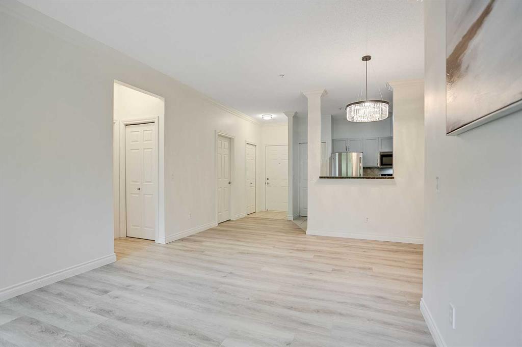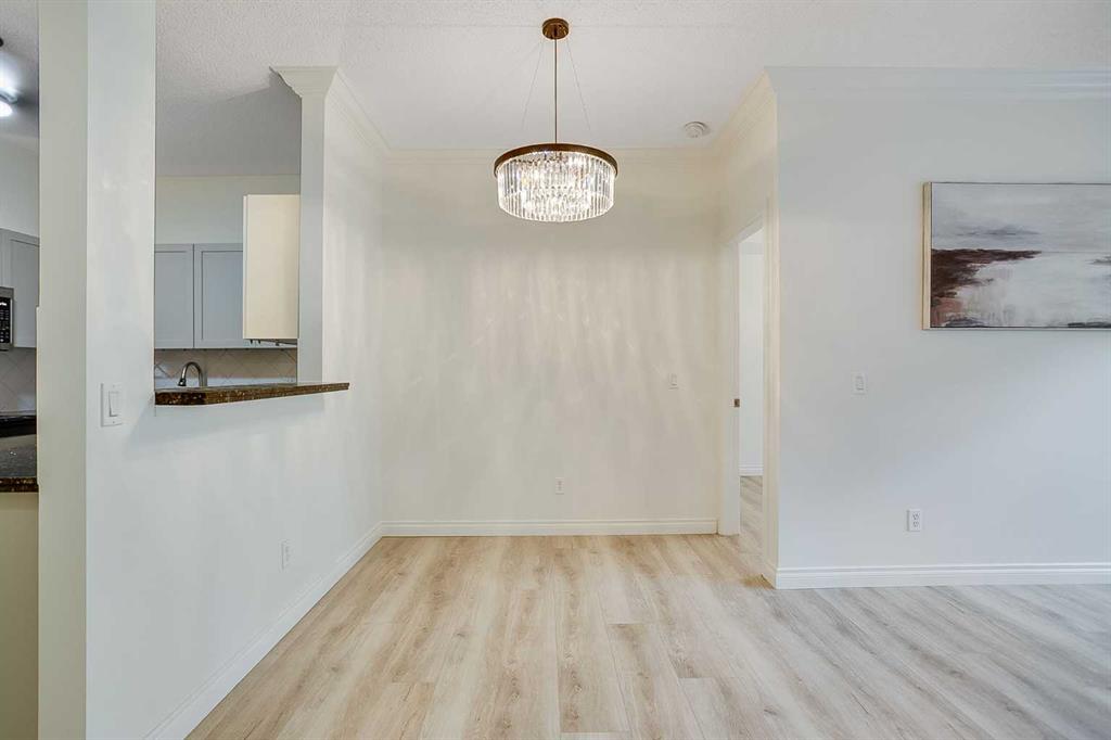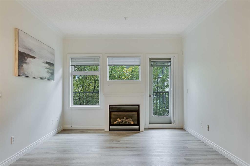 Welcome to the vibrant and sought-after community of Cedarbrae! This beautifully designed condo offers the perfect combination of style, comfort, and low-maintenance living. With nearly 900 sq. ft. of thoughtfully designed space, this 2-bedroom + den, 2-bathroom home is ideal for professionals, couples, small families, or those looking to downsize. Step inside to discover an open-concept floor plan enhanced by 9-foot ceilings, new carpet in the bedrooms, fresh paint, new vinyl plank flooring throughout the main living areas. The modern kitchen is a chef’s delight with granite countertops, stainless steel appliances, ample cabinetry, a pantry, and a breakfast bar for casual dining. The adjoining living room features crown molding, a cozy gas fireplace, and large windows that fill the space with natural light. The spacious primary bedroom offers a peaceful retreat with a walk-through closet fitted with a custom organizer and a private 3-piece ensuite. A generous second bedroom, an additional 4-piece bathroom, and a versatile den—perfect for a home office, craft space or reading nook—complete the functional layout. Step out onto your large east-facing balcony overlooking green space—perfect for your morning coffee or summer BBQs, thanks to the natural gas hook-up. Enjoy year-round comfort with in-suite laundry and tile flooring in the kitchen and bathrooms.This well-managed and meticulously maintained complex offers a fitness center, party room, heated underground parking (with one of the most conveniently located stalls near the elevator), bike storage, and plenty of visitor parking. A storage locker is also included for your convenience. Ideally located near Stoney Trail and Anderson Road, you’re just minutes from schools, parks, shopping, transit, a hospital, and everyday essentials. Whether you’re buying your first home, investing, or looking to simplify your lifestyle, this stunning condo has it all. Units in this complex rarely last—schedule your showing today!