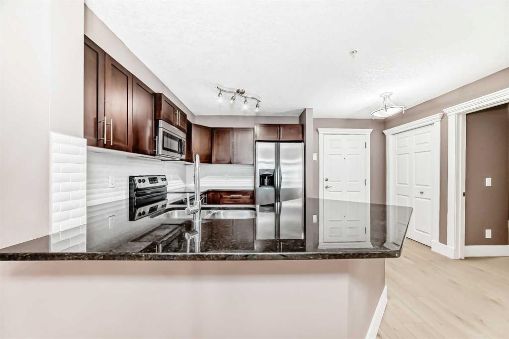 The den offers ideal flex space for a home office or reading nook, while the spacious bedroom provides comfort and privacy. Enjoy in-suite laundry, underground parking, and access to nearby walking paths, parks, shopping, YMCA, and C-Train station in walking distance.