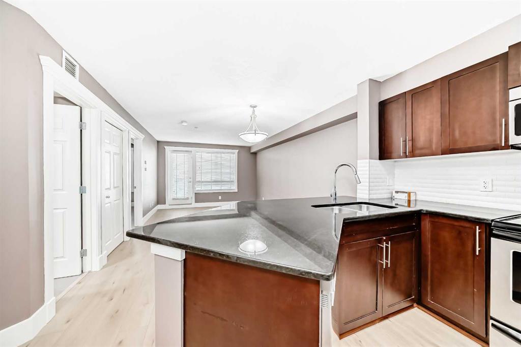Welcome to 207, 500 Rocky Vista Gardens NW — a bright and inviting 1-bedroom + den condo in desirable Rocky Ridge. This well-appointed unit features brand new laminate flooring, an open-concept layout, and stunning mountain views from your private balcony.