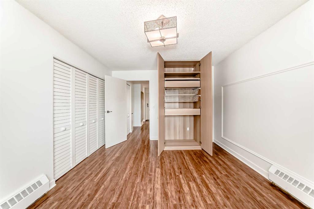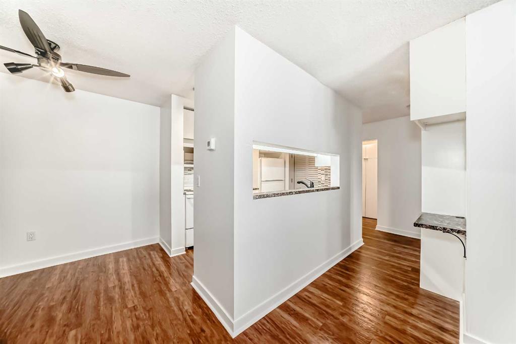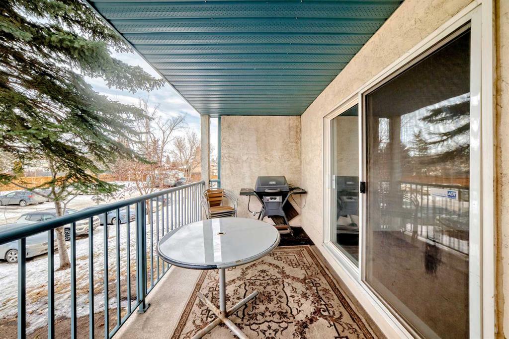 Welcome to this freshly updated, move-in-ready one-bedroom, one-bathroom apartment offering an excellent opportunity for first-time buyers or investors. This well-maintained, single-level unit has been thoughtfully updated to provide comfort, functionality, and affordability. The home has been freshly painted and features durable laminate flooring throughout. The kitchen is nicely upgraded with newer soft-close cabinets in modern gloss white fronts, under-cabinet lighting, and generous counter space with marble-style arborite countertops. A double pantry off the kitchen provides excellent additional storage, while a newer matte black pull-down faucet, newer dishwasher with a stainless-steel interior tub, and a new over-the-range microwave complete the space. The dining area features a stylish accent wall and a ceiling fan with dimmable lighting, creating a comfortable space for everyday meals. The living room opens onto a private balcony that offers a quiet outdoor retreat. The barbecue, table, and chairs are included, making the space ready to enjoy right away. The bedroom includes a double wall closet, along with an additional movable closet unit for extra storage. The bathroom also offers double medicine cabinets for added storage and convenience. In-suite laundry is provided with an LG front-load stacked washer and dryer. Heat and water are included in the condo fees, keeping monthly costs low. The poly-B plumbing has been removed for added peace of mind. The building offers quick elevator access to the second floor, an assigned exterior parking stall, and easy visitor parking located directly out front. Quick possession is available, making this an ideal option for buyers looking to move in without delay. The location is well suited for daily living and commuting, with nearby elementary and junior high schools, shopping, grocery stores, restaurants, and services close by along International Avenue and throughout the area. Downtown Calgary is approximately a 10 to 15 minute drive depending on traffic, with nearby transit routes and easy access to Deerfoot Trail, Memorial Drive, and 17 Avenue SE. This well-located, low-maintenance home is a smart and affordable way to enter the Calgary real estate market, offering practical upgrades, privacy, and excellent accessibility. Don't delay, call today!