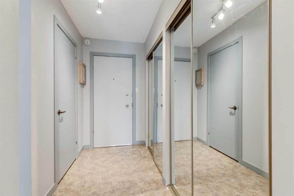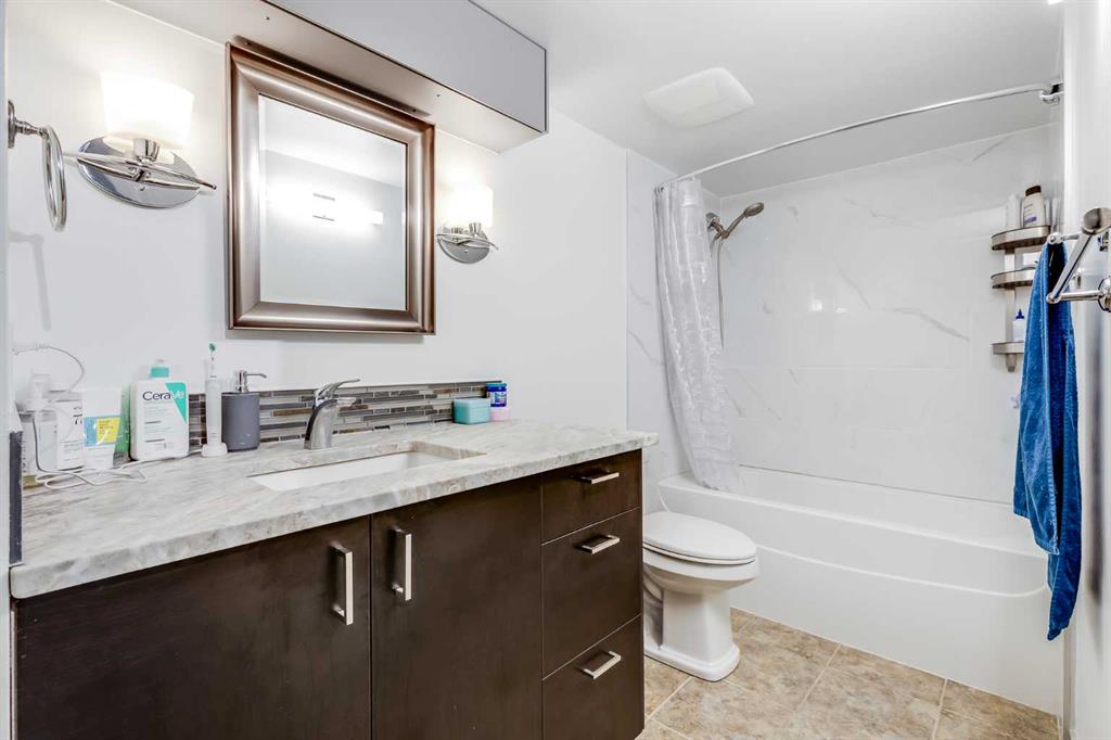 Welcome to this beautifully maintained home in the highly sought-after inner-city community of Windsor Park. With thoughtful upgrades throughout, this unit offers both comfort and convenience. Step into the open-concept layout, where a bright and spacious living room features a striking stone-and-wood accent wall with customizable LED lighting. The modern galley kitchen is a true showpiece, boasting granite countertops, full-height cabinetry, soft-close drawers, a sleek tile backsplash, and stainless steel appliances. Just off the kitchen, the dining area easily accommodates a large table perfect for family dinners or entertaining guests. Enjoy your own private balcony overlooking a quiet, tree-lined street, an ideal retreat for morning coffee or evening relaxation. This is the most desirable unit in the building, offering the rare combination of in-suite laundry and a covered parking stall. Located just steps from the Chinook C-Train station and one block from Chinook Centre, with quick access to Macleod Trail and downtown, this condo provides the ultimate urban lifestyle.