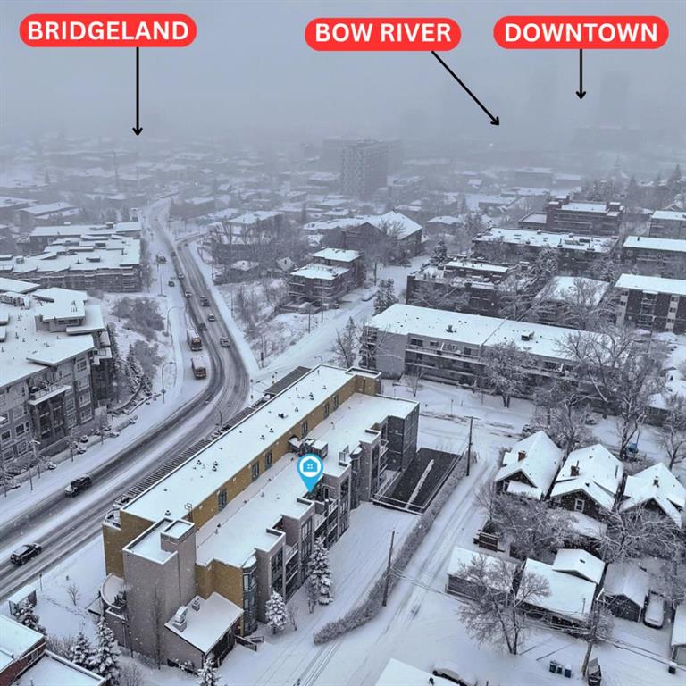 Welcome to Arcadia at Crescent. This newly built (2014) and beautifully maintained 684 sq. ft. one-bedroom, one-bathroom condo is just steps from downtown Calgary in the heart of Crescent Heights. This spacious unit offers a surprisingly large living area for a one-bedroom layout, in-suite laundry, titled secure underground parking, elevator access, and a dedicated bike storage room. The interior features tile flooring in the kitchen and bathroom, complemented by laminate flooring throughout the living room and bedroom. The modern kitchen is equipped with quartz countertops and stainless steel appliances, while the bathroom is finished with quartz counters to match. A highlight of this home is the large west-facing covered balcony, facing away from Edmonton Trail to provide a quiet, sunny retreat and ensuring the interior stays peaceful year-round; perfect for relaxing afternoons or sheltered winter barbecues. Mere blocks from downtown and surrounded by parks, tennis courts, basketball courts, greenspace, the Bow River pathway, and the vibrant restaurants, cafés, and shops of Bridgeland, this home delivers the ideal blend of urban convenience and community charm. Book your showing today. This one won’t last!