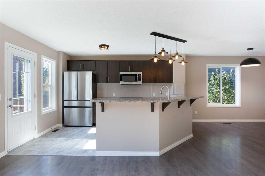 Welcome to 209 Viewpointe Terrace in beautiful Chestermere! Located on a quiet street with no condo fees, this bright and spacious end-unit townhome offers over 1,600 sq ft of developed living space. Features include central air conditioning, stainless steel appliances, a fully developed lower level, single attached garage, and a south-facing fenced yard with deck—perfect for outdoor living. The main floor offers a large great room, 2-piece bath, and a kitchen with raised eating bar, ample cabinetry, and access to the backyard. Upstairs features three generous bedrooms, a 4-piece bath, convenient upper laundry, a bonus room, and a primary suite with walk-in closet and full ensuite. The lower level includes a large rec room, 2-piece bath, and storage. Ideally located near Chestermere Lake, parks, beaches, golf, shopping, restaurants, and schools including Prairie Waters Elementary, Chestermere Lake Middle, and Chestermere High School.