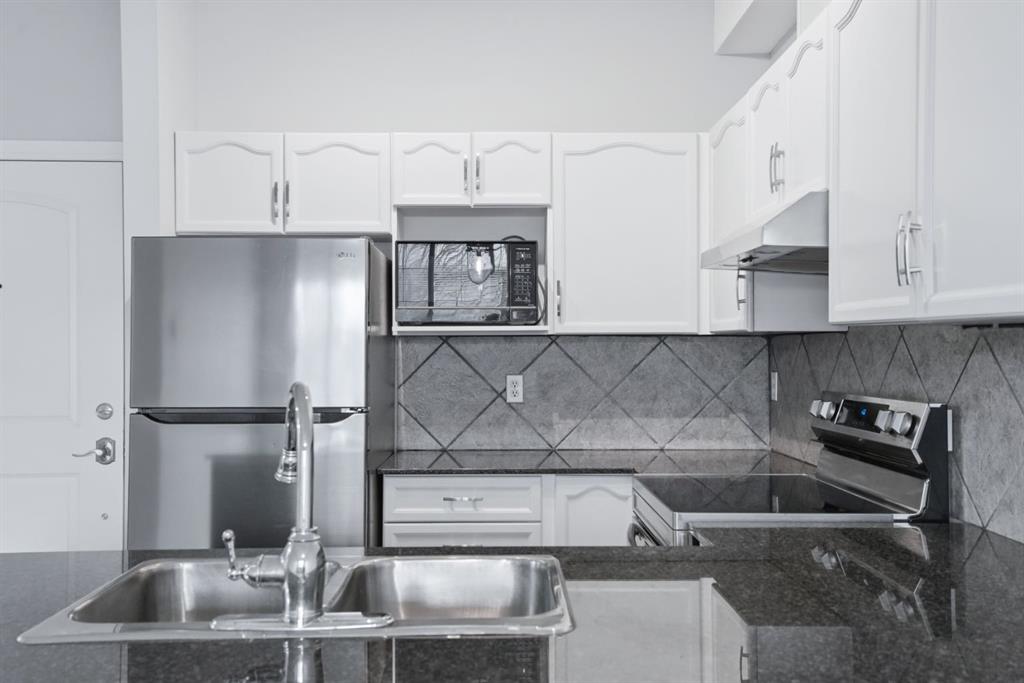 This bright and spacious condo features 9 ft. ceilings, large windows, and an open-concept layout that seamlessly connects the kitchen, dining, and living areas. The kitchen is equipped with granite countertops, stainless steel appliances, and plenty of cabinetry, making it perfect for everyday cooking and entertaining.