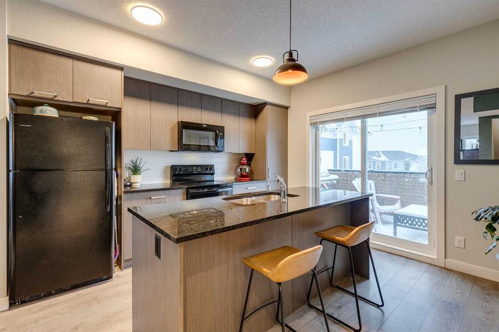 Welcome to 2103 Jumping Pound Common in Cochrane's sought-after Jumping Pound Ridge, where LOW CONDO FEES deliver exceptional value for modern, carefree living! Nestled just steps from Jumpingpound Creek and scenic walking trails, this impeccably designed 2017-built three-storey townhouse spans 1,280 sq ft of bright, inviting space, boasting two generous bedrooms, one full bath, one half bath, and a flexible den on the main level—perfect for a home office, workout area, or guest retreat. Ascend to the open-concept second floor, where a gourmet kitchen with sleek granite countertops, ample cabinetry, and premium appliances flows seamlessly into the living area, illuminated by abundant natural light and leading to a spacious balcony with gas line for effortless BBQs and outdoor enjoyment. Upstairs, the primary bedroom accommodates a king-size bed with ease, complemented by a second bedroom, full bathroom featuring a deep soaker tub, and convenient in-unit laundry. Finished with an insulated attached garage offering extra storage, this well-cared-for gem provides year-round appeal— from summer adventures along the Bow River to winter fun on Cochrane's top sledding hill, all near playgrounds, schools, shops, and quick access to Calgary. Seize this all-season haven—call a Realtor now to schedule a viewing!