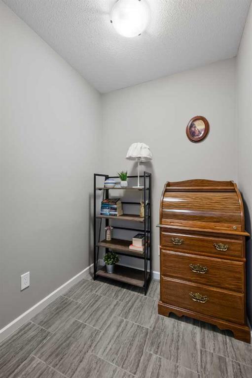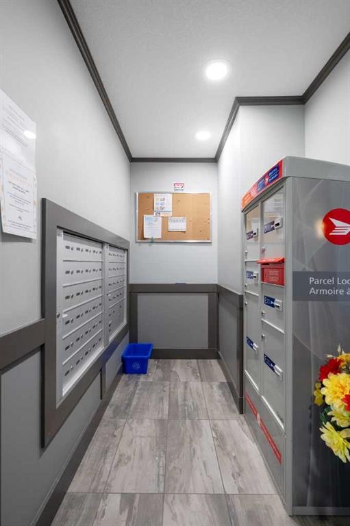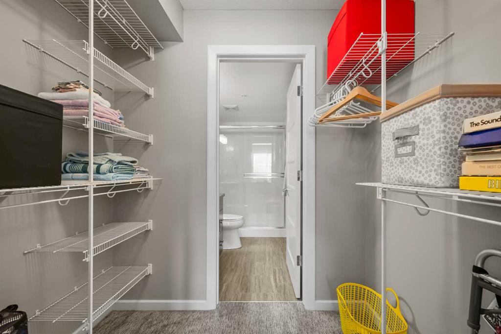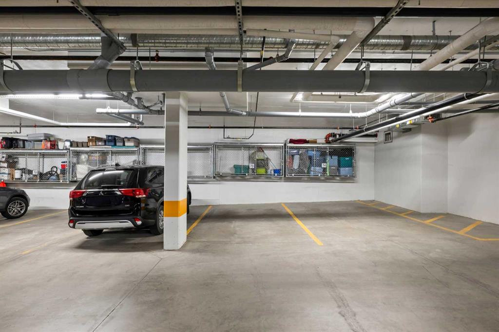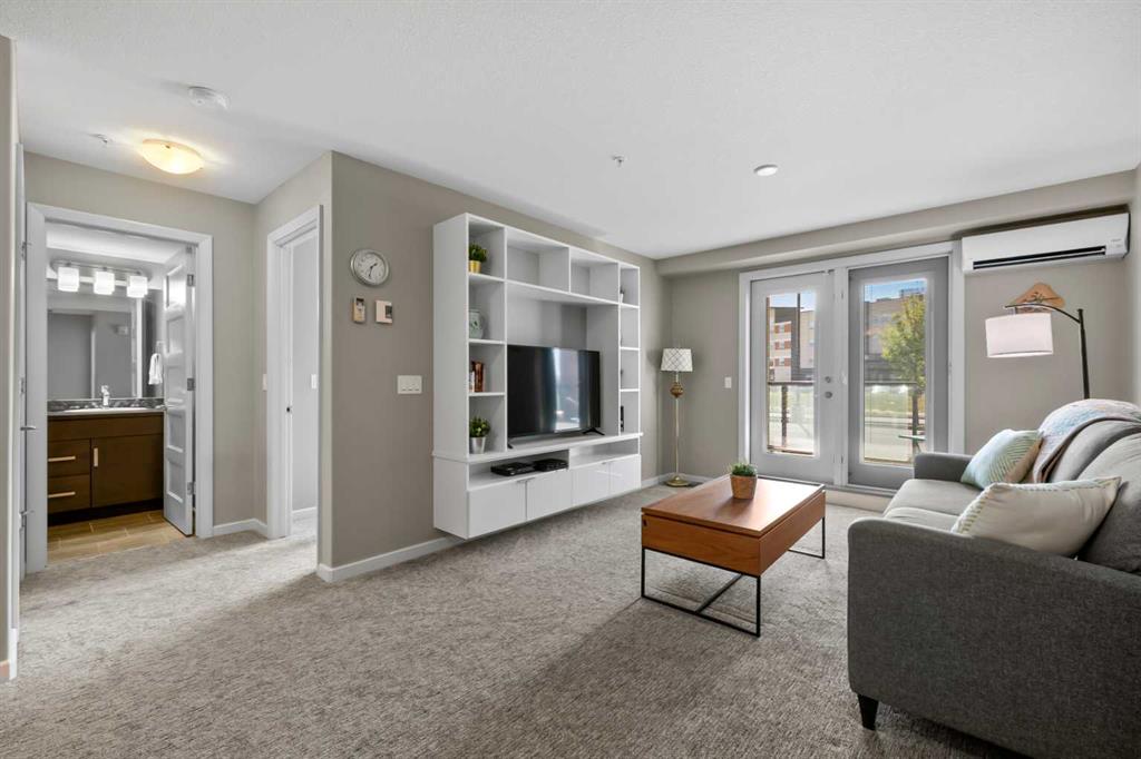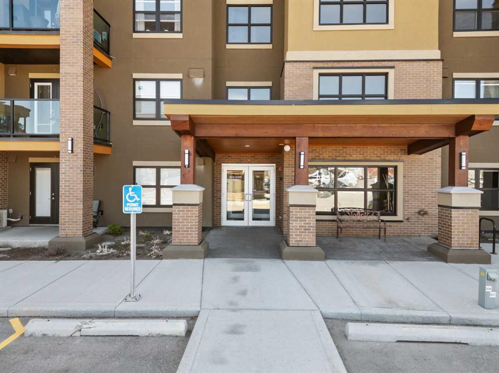 Welcome to The Chateaux! Airdrie's premier 40+ condo building in the wonderful community of Kings Heights. This complex offers sophistication, pride of ownership, and unbeatable proximity to all amenities. Upon entering this unit, you'll be impressed by the abundance of natural light, enhanced by its south-facing exposure. You're greeted by beautiful tile flooring that leads into a welcoming front entrance, where you'll find a spacious coat closet with built-in shelves, perfect for storing coats, keys and shoes. To your right is the kitchen, you will love not only the generous counter space but also the ample cabinetry this layout offers. The kitchen features granite countertops, a large sink, a lazy Susan in the corner cabinet, a garburator and a counter overhang for bar stool seating, ideal for casual meals. Stainless steel appliances and a well-appointed pantry with pull-out drawers complete this thoughtfully designed space. Moving into the living room, enjoy a spacious layout complemented by a beautiful custom California Closets media centre that is perfect for your TV, artwork and storage needs. Stay cool in the summer with a wall-mounted A/C unit. Your southwest-facing balcony offers year-round afternoon sun, making it the perfect place to enjoy your morning coffee, tea or an evening drink. This balcony was upgraded at the time of construction with glass panels and a gate, offering convenient direct access to the landscaped common areas, especially great for pet owners. The primary bedroom is a dream, with a large south-facing window and a spacious walk-through closet that leads into your ensuite bathroom. The ensuite features a walk-in shower with a built-in seat and elegant glass doors. The second bedroom is impressively sized and bright with custom built-in California Closet organizers that provide exceptional storage and organization. A second full bathroom is located just outside this room, complete with a beautiful vanity and a large bathtub. In-suite laundry is neatly tucked into a dedicated closet with room for storage and laundry supplies. This apartment also features a versatile den to the left of the front door that is ideal for a home office, additional storage or exercise space. For parking, enjoy the convenience of a titled underground stall located just steps from the elevator. In front of your stall, you’ll find a large, secure storage locker. Plus, there’s ample outdoor visitor parking for your guests. The Chateaux features a beautifully landscaped courtyard with a gas fireplace, and an amenity room available for private bookings where residents regularly gather here for social events and happy hours. There's also a secure underground workshop for woodworking enthusiasts. Located in Kings Heights, you’re within walking distance to Save-On-Food, Shoppers Drug Mart, banks, salons, restaurants and more meeting all your grocery, shopping, and healthcare needs. This building is truly designed for mature ownership & a vibrant, social community.