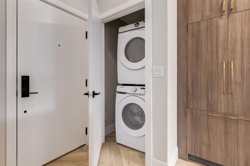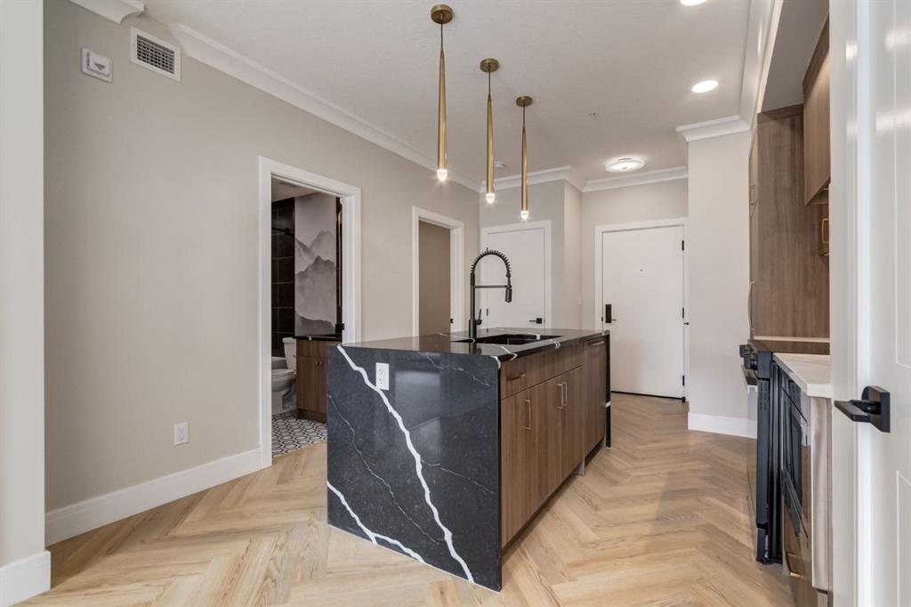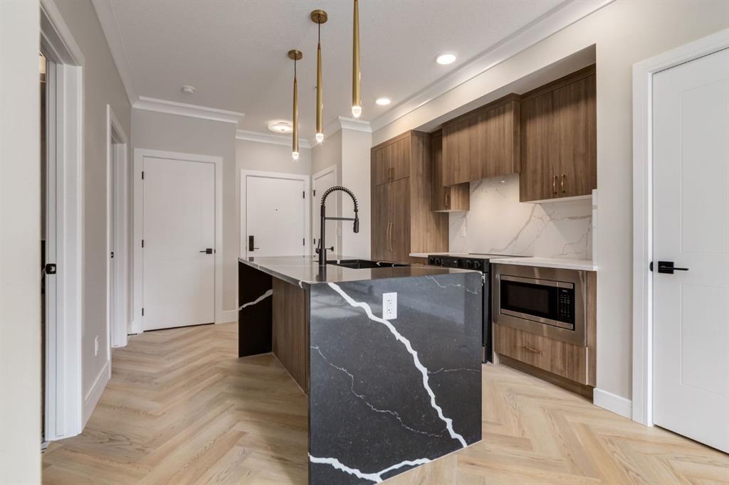 Discover modern living at its finest in this brand-new 1-bedroom, 1-bathroom plus den condo by Rohit Homes. Located in the highly sought-after University District, this home offers the perfect blend of luxury, convenience, and contemporary design. Step inside to find sophisticated finishes including waterfall quartz countertops, floor-to-ceiling triple-pane windows, and your choice of one of three stunning Designer Interiors. Whether you prefer chic, elegant, or bold, this home can reflect your personal style. Enjoy the comfort of in-suite laundry, a private balcony, and A/C rough-in to keep you cool during Calgary’s warm summers. A titled underground parking stall ensures your vehicle is secure and easily accessible year-round. Living in the University District means you’re part of a thriving community filled with exceptional amenities, trendy shops, diverse dining options, and serene green spaces. With close proximity to major institutions, like the University of Calgary and top healthcare facilities, this location offers unparalleled convenience for students, professionals, and families alike. Whether you’re looking to invest or make this your forever home, Dean's Landing is a lifestyle opportunity you don’t want to miss. Contact us today to learn more about this incredible property and other available options!
