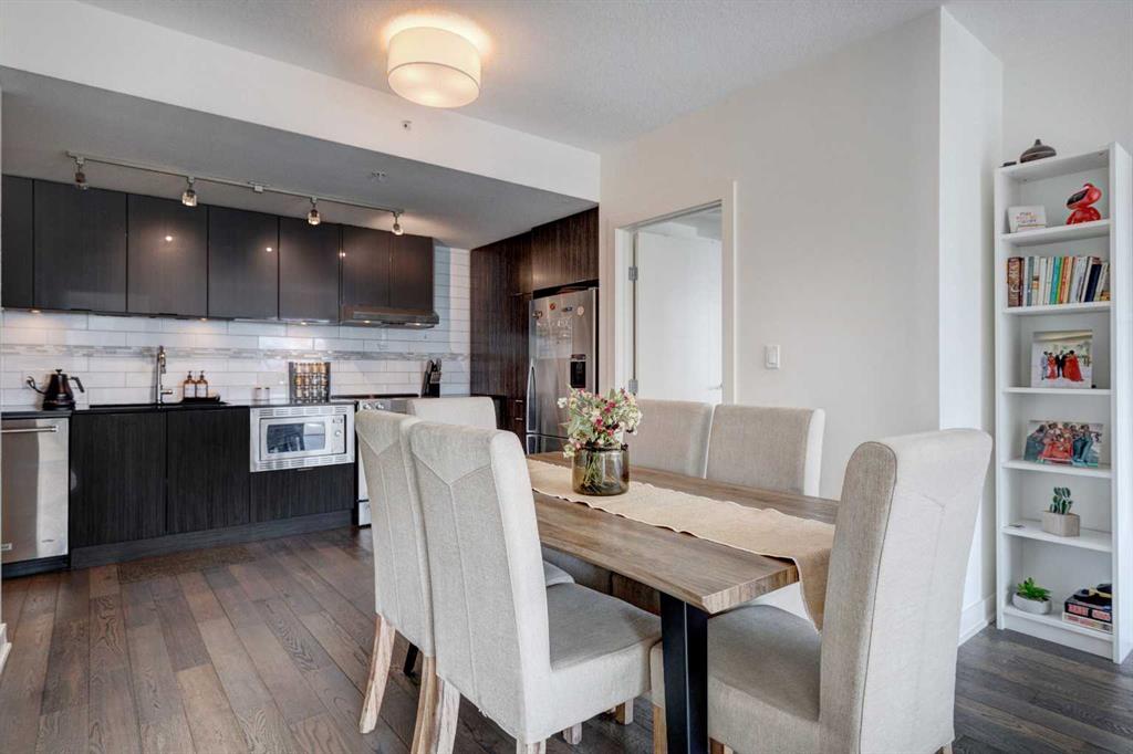 Welcome to Vogue, where luxurious downtown living meets convenience and comfort. This beautiful 2 bed/2bath unit offers a large living room with floor to ceiling windows to allow lots of natural light to beam in with hardwood floors. You will love your beautiful modern kitchen with beautiful cabinets, stainless steel appliances and quartz countertops. Enjoy your lifestyle with modern amenities and breathtaking VIEWS. This unit has been curated to offer the best of functionality, style, and efficiency. The split bedroom layout with 2 full baths allows for privacy while maintaining a light filled open space. In-suite laundry, ample closet space, and a balcony completes the package, while the titled underground parking adds convenience and security. Additionally, residents and guests alike have access to a lot of amenities, including a rooftop sky gym, party room, yoga room, games room, boardroom/business center, and a secure bike room with a pet washing station. central A/C as well as stunning mountain views from the 36th floor Sky lounge. Visitor parking and concierge service 7 days a week ensures a seamless and enjoyable living experience. Situated just a block away from the C-Train station, commuting and exploring the city is effortless. You'll find yourself surrounded by an array of shops, restaurants, and entertainment options. also Bow River Pathway is only a few blocks away. Whether you're looking for luxurious living spaces, or breathtaking views, Vogue is your best choice.