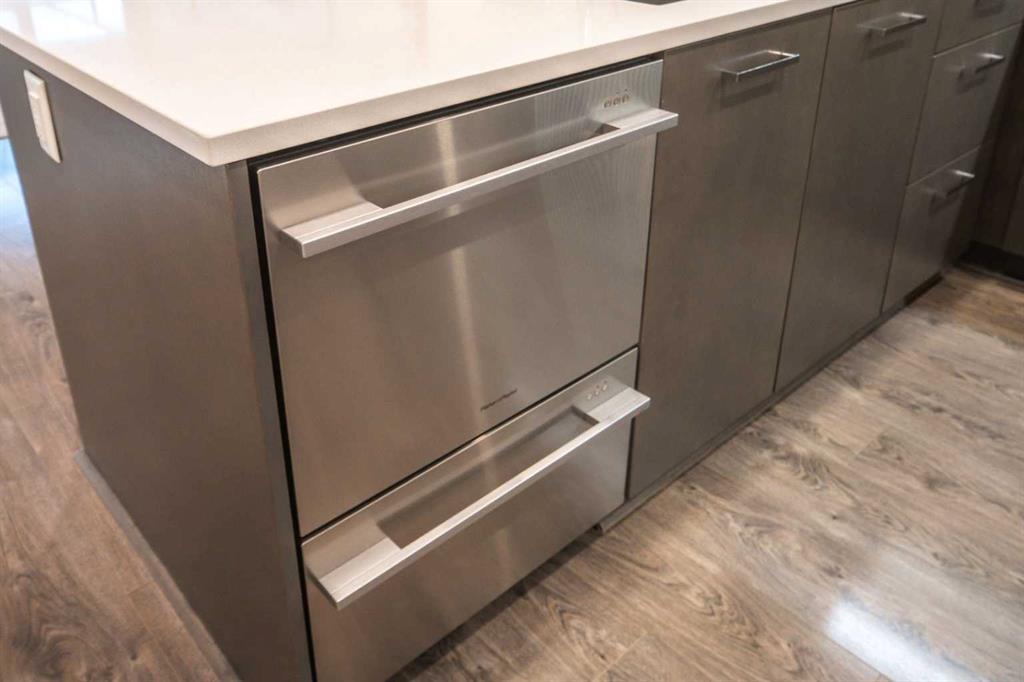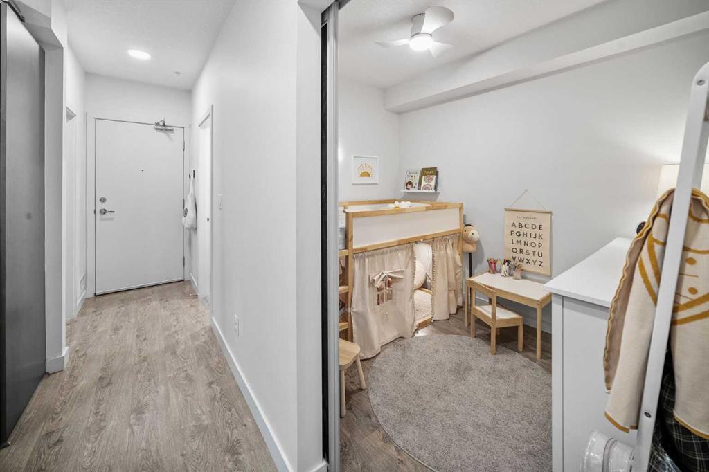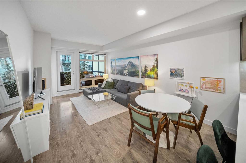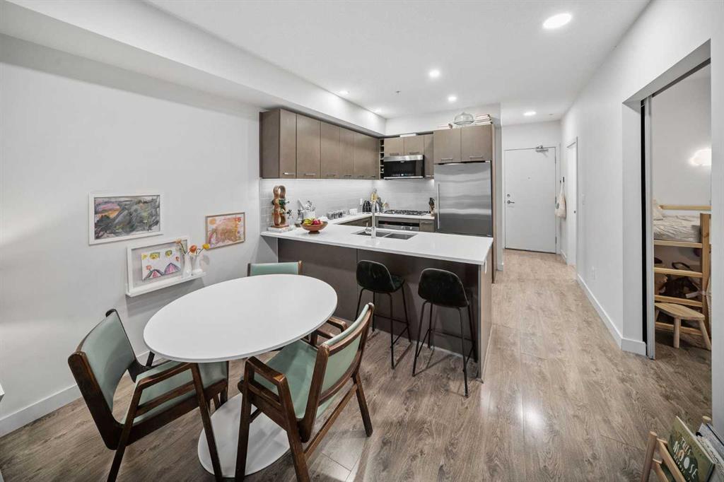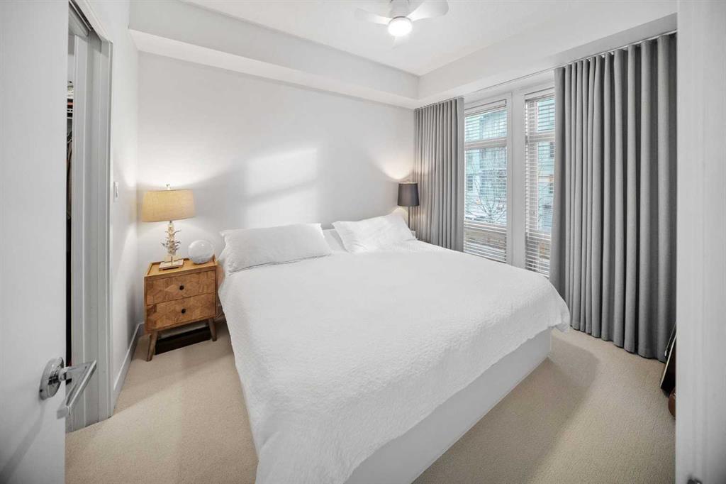 Located in one of the city’s most walkable communities and just steps from Lindsay Park, this south-facing two-bedroom home is ideal for anyone looking to enjoy the unmatched amenities of Mission. With nine-foot ceilings and an award-winning layout, the living space flows seamlessly to a large, covered balcony. The U-shaped kitchen features quartz countertops, under-cabinet lighting, Fisher & Paykel stainless steel refrigerator, double-drawer dishwasher, built-in convection oven, Frigidaire microwave hood fan, garburator, and a four-burner Bosch gas cooktop. Near the front entry, you’ll find the Samsung washer/dryer and oversized entry closet offering ample room for seasonal storage. The four-piece bathroom includes quartz counters and a deep soaker tub with full tile surround. The second bedroom/office has a sleek sliding door and is positioned away from the primary bedroom and near the main bath. The primary accommodates a king-sized bed and includes custom blackout curtains and a generous walk-through closet. The three-piece ensuite features a full-height wall-mirror, quartz counters, exceptional vanity storage, and a linen closet. The 97 sq. ft. south-facing balcony with gas line hookup looks out at a tree line and over the secured community garden. This home includes *two titled, oversized, side-by-side parking stalls* located directly beside the parkade entrance and enclosed by concrete on both sides, with an assigned storage locker nearby. The building offers a car wash bay, secure bike storage, and plenty of underground visitor parking. Mission is tough to beat. If you value the ability to walk to a grocery store, boutique shops, arts & entertainment, the Elbow River pathways, and some of the best restaurants in the city - this could be the place for you.