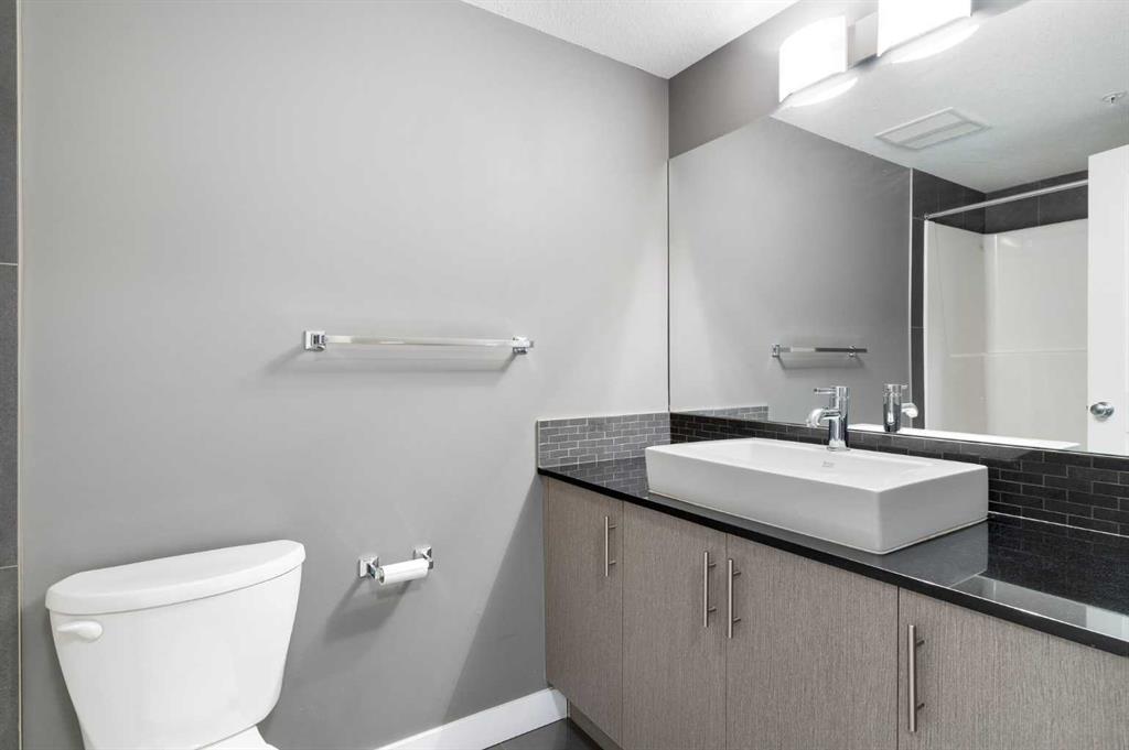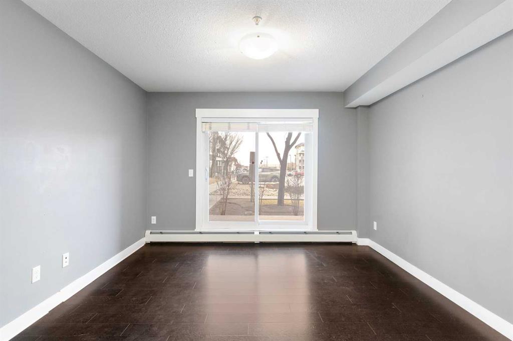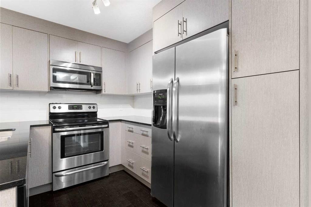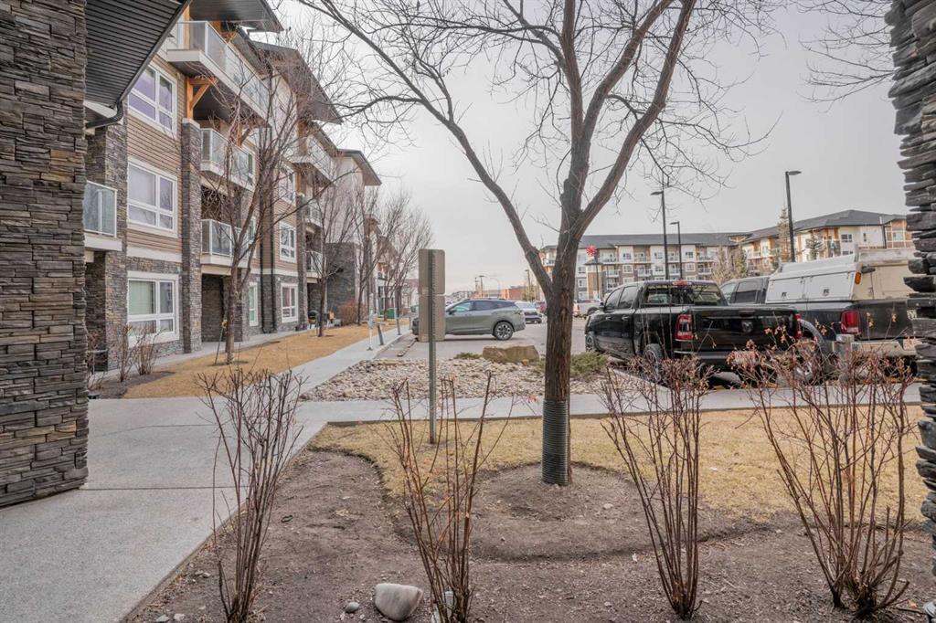 Check out this amazing two-bedroom, two-bathroom condo located on the ground floor. The unit is spacious, with an open-concept design. The kitchen has sleek black granite countertops, stainless steel appliances, and a large central island that is perfect for both cooking and entertaining. The large open living space has warm cork flooring that leads you to a patio with beautiful landscaping and a gas BBQ hook up. The massive primary bedroom has his and her closets and a four-piece bathroom. The second bedroom is a good size and close to the main bathroom. Every room is wired with fiber internet for shaw or telus. This unit also has a titled above-ground parking stall that is super convenient. Located across from the complex are Catholic and Public schools. There are also shops, bus stops, and playgrounds within walking distance. Come and view this amazing home in the beautiful community of Skyview Ranch.