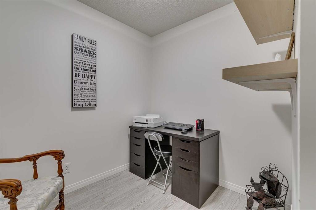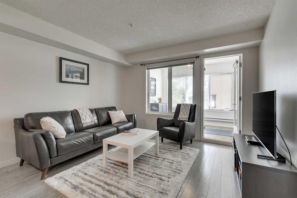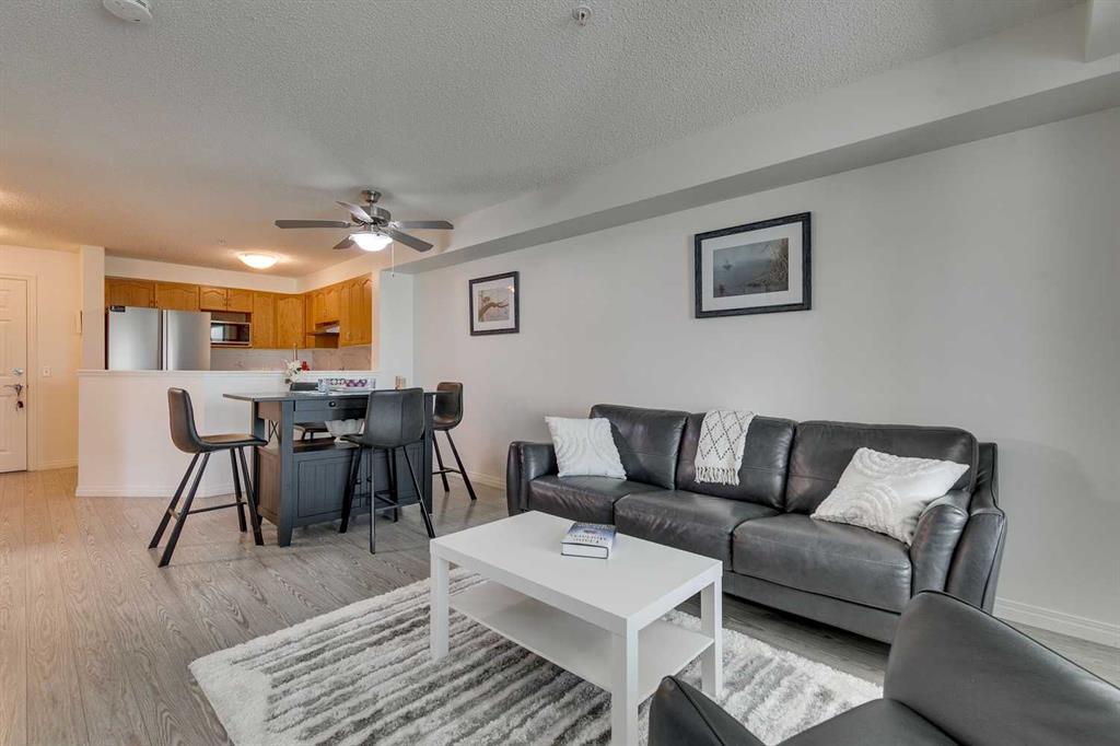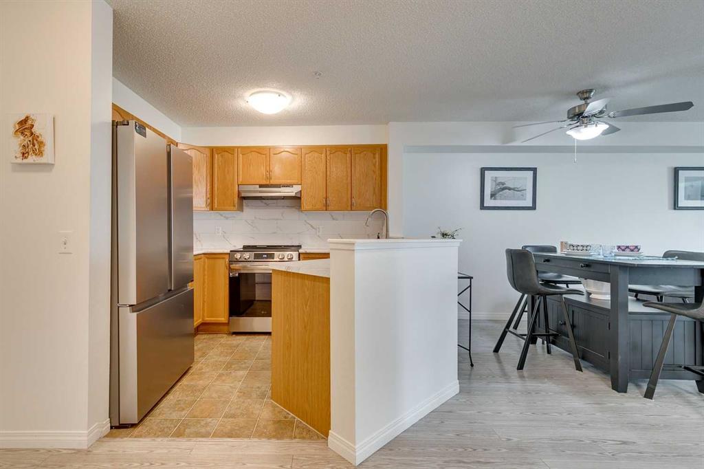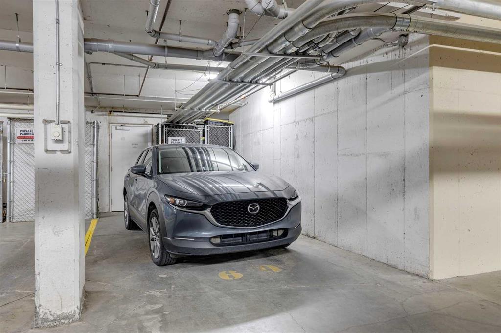 ABSOLUTELY IMMACULATE 814 SQFT ONE BEDROOM PLUS DEN WITH A HEATED SUNROOM! Very open floor plan with vinyl plank flooring & bright sunny east exposure. Freshly painted throughout, upgraded features include new countertops, kitchen sink & tap plus all new top of the line stainless kitchen appliances. Good sized kitchen with excellent counter & cabinet space plus a raised breakfast bar overlooking a good sized dining area & large living room. The den has a sprinkler & could be used as a spare bedroom or an office. The king sized master bedroom easily accommodates a full bedroom suite & includes a spacious walk-in closet. The 4 pc bath has lots of storage plus counter space & the in suite laundry is very conveniently located. The headed sunroom is a huge bonus & is perfect for soaking up the sun or just relaxing with a cup of coffee. The excellent light makes it a perfect sewing or crafting space & your plants will love it. This main floor suite includes assigned heated underground parking & a dedicated storage locker. This 50+ complex is well managed & maintained & features a very active social group with a well equipped activity room. Lots of visitor parking available for your guests & a convenient location close to transit, shopping & easy access to the new Ring Road System.