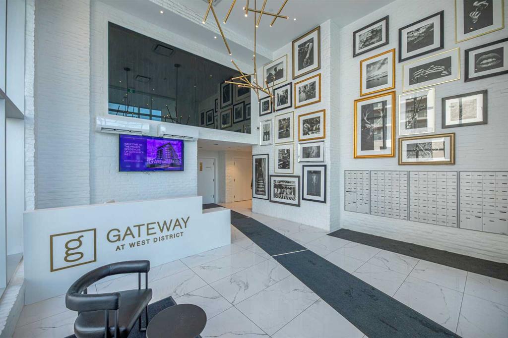 Welcome to the beautiful West! This two-bedroom, two-bathroom residence, situated in the heart of a master planned community, boasts desirable south exposure and southwest mountain views. This quiet, concrete building offers a chic aesthetic with high-end finishes, including air conditioning, luxury wide flooring (no carpets), and elegant penny round mosaic tiles in all baths. Enjoy bright and functional living with pot lights, 9-foot painted ceilings, and a luxurious white kitchen featuring brushed gold hardware, a high-end gas cooktop, wall oven, an integrated 36" Fisher & Paykel fridge, panelled dishwasher, and soft-close custom cabinetry with under-cabinet lighting. Quartz countertops and backsplash add a touch of sophistication. Downstairs, vibrant shopping, dining, fitness centres, and everyday amenities are at your doorstep. Radio Park is nearby, and you are close to schools, transit, and all amenities, with a quick connection to Stoney Trail for heading out to the mountains. The building is impeccably maintained and includes underground parking, a dedicated storage unit, bicycle storage, concierge service during the day, and underground visitor parking.