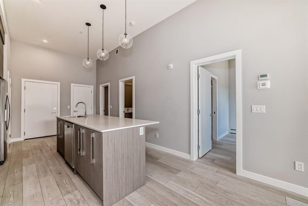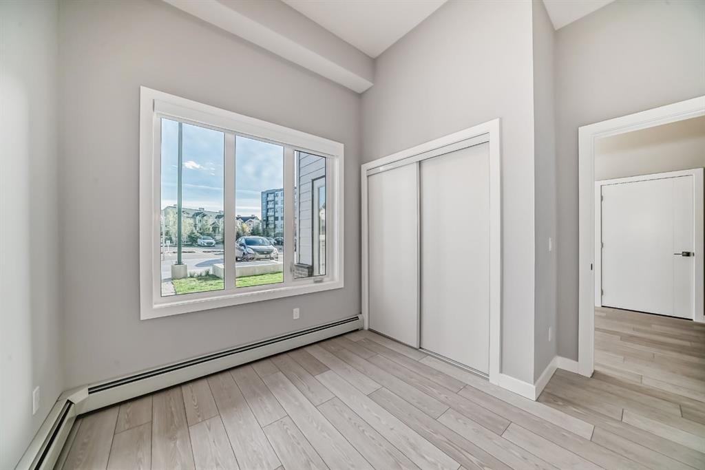 Welcome to your new home in the vibrant Skyview Ranch community! This stunning Main Floor Corner suite features a bright and airy layout with Two spacious Bedrooms and Two Bathrooms, offering both comfort and convenience. Along with 1 Titled Parking Stalls! Step inside to discover elegant luxury vinyl plank flooring and a designer lighting package that enhances the inviting atmosphere throughout. The chef-inspired Kitchen is equipped with stainless steel Appliances, soft-close Cabinetry, and exquisite Quartz Countertops. The Primary Bedroom offers a generous Closet, and 3-piece Ensuite Bathroom. The second Bedroom is perfect for guests or a home office. Additional conveniences include an in-suite Washer and Dryer, stylish window coverings, and a cozy Patio off the living room—ideal for enjoying your morning coffee or unwinding in the evening. Skyview North is perfectly located near an array of amenities, including shopping at Sky Point Landing, expansive green spaces, and fantastic playgrounds for families. With quick access to Stoney and Deerfoot Trails, your commute will be a breeze. Don’t miss out on this exceptional living opportunity at Skyview North! Schedule your showing today!