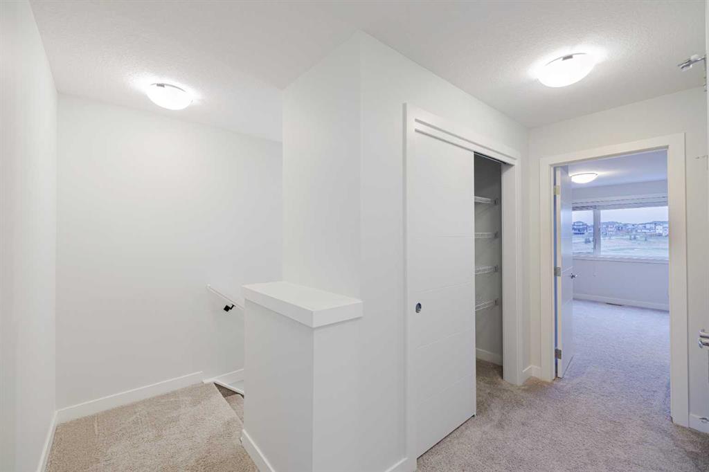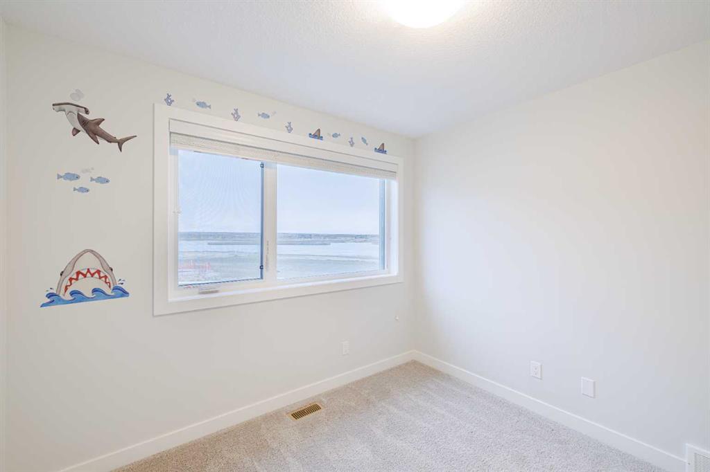 Welcome to this exquisite townhome that epitomizes the perfect blend of luxury, functionality, and natural beauty. Nestled in Harmony—an award-winning community that has proudly earned “Community of the Year – Calgary Region” eight times—this residence stands out with a plethora of upgrades, meticulous maintenance, and thoughtful design. Harmony offers an unmatched lifestyle, combining lake and golf living, walkable amenities, and stunning mountain views. As a resident, you’ll enjoy social membership at the renowned Mickelson National Golf Club, giving you access to world-class golfing right in your backyard. Families will appreciate the proximity to sought-after schools including Springbank Middle School, Springbank Community High School, and the prestigious Edge School for athletes and academics. As you step inside, you are greeted by a spacious den off the front entrance, just steps from the oversized double-car garage featuring a forward-thinking 40-amp EV connection, a true testament to modern living. Ascending to the main level, the kitchen immediately captivates with its elegant finishes—quartz countertops, a large island with breakfast bar seating, ceiling-height white cabinetry, and upgraded stainless steel appliances including a gas range for the culinary enthusiast. A massive pantry with extensive shelving ensures optimal organization. Adjacent to the kitchen is a charming eating nook with access to the front deck, where you can enjoy peaceful lake views. The sunlit living room offers a bright and inviting atmosphere, with panoramic mountain vistas framed by large windows, and a stylish fireplace with custom tile surround adding warmth and sophistication. The upper level showcases the primary suite, complete with a custom California Closet system and a spa-like ensuite featuring in-floor heating, a private water closet, standalone shower, and dual vanity. An upgraded laundry area with quartz countertop, additional shelving, and a large linen closet adds convenience. Two additional generously sized bedrooms and a 4-piece bathroom complete this floor. Outside of the home, Harmony’s amenities enrich everyday living—a 5-minute drive to Calaway Park, and the upcoming Bingham Crossing development with a future Costco and numerous shops and services. Residents also enjoy walking access to the community lake, miles of pathways, and future commercial amenities including the Nordic Spa.