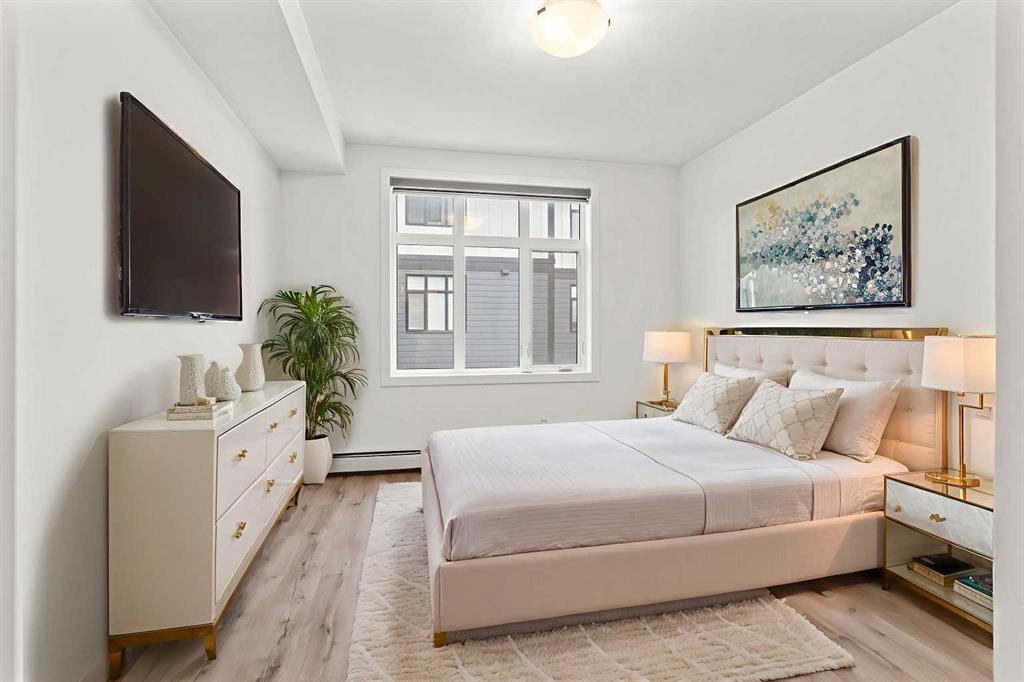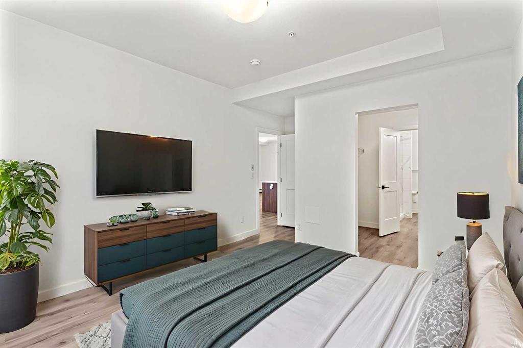 The primary suite is a private retreat, offering a generous layout, an extra-large walk-in closet with custom organizer, and a spa-inspired 4-piece ensuite complete with a tiled shower and upgraded cabinetry. The second bedroom provides excellent flexibility, enhanced by a pocket door offering direct access to the main bathroom—ideal for guests or a home office setup.