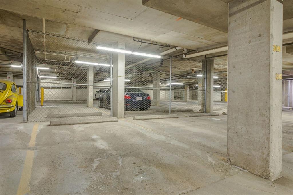 This lovely one bedroom + den is bright & spacious and includes a titled underground parking stall and titled storage cage. It has a popular open concept design with large windows and elegant laminate flooring throughout. The kitchen has maple cabinets, under cabinet lighting, a center island, quartz counters and stainless steel appliances. The dishwasher is new and the in-suite washer & dryer have been updated. You'll love hosting family and friends for meals in the dining area. The living room is spacious with a modern gas fireplace and sliding doors to the east facing balcony with its peaceful backdrop of mature trees. There is a gas hookup for your BBQ. The bedroom is roomy with a generous walk-through closet that adjoins the 4-piece bathroom. The unit is conveniently located close to a second elevator that provides quick & easy access to the fenced courtyard, underground parking, storage cage, locked bike storage & garbage room. The popular "Gateway Garrison Woods" is a quiet & pet friendly building. Electricity is included in the condo fees. The stylish social room on the 3rd floor features a rooftop balcony that overlooks an outstanding professionally landscaped inner courtyard. It can be reserved without charge for special occasions. Underground visitor parking is available for your guests. Steps away from cafes, restaurants, pubs, entertainment, boutiques, shops, supermarkets and the many services of Marda Loop. Easy access to Crowchild Trail and a short drive to the River Park off-leash dog park, Sandy Beach and the Glenmore Athletic Park. Come and take a look, you won't be disappointed!