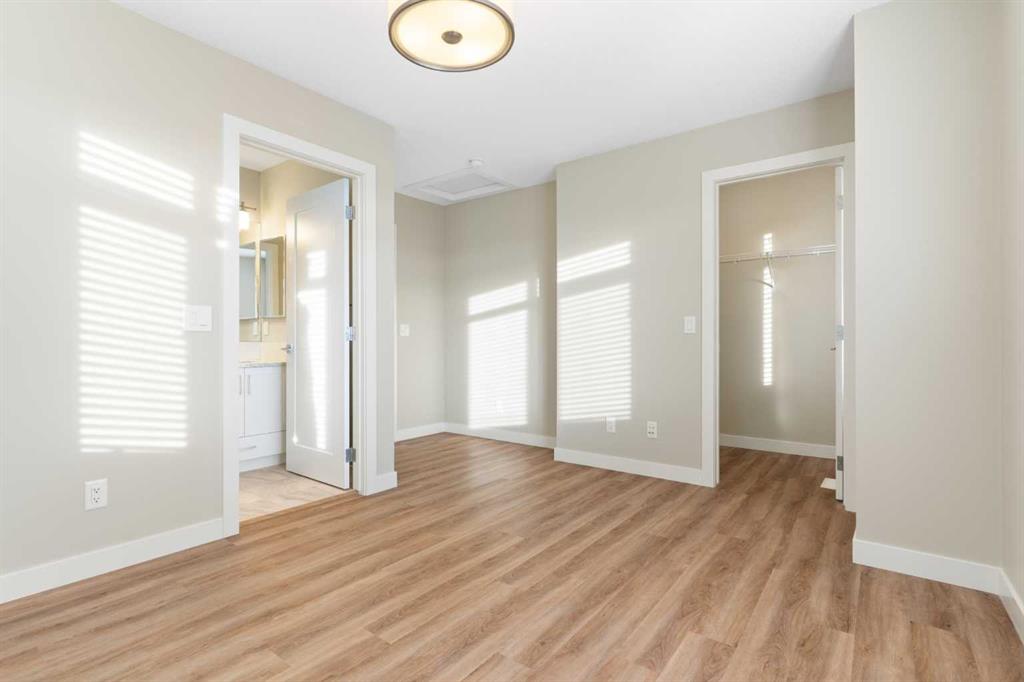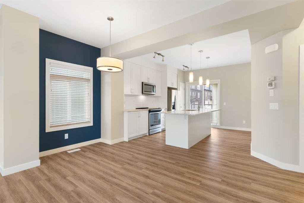 Rarely does a townhouse become available that is this well appointed and is maintained in near new condition. Offered for the first time by the original owner who selected most of the upgrades offered by the builder costing $21,000. This two primary bedroom, 2.5-bathroom end unit offers over 1500 sq. ft. of luxurious contemporary open living space bathed in an abundance of natural light. All levels are above grade. Upon entry, you will step into a large flex room that makes for a great office, exercise, hobby or recreation room. There is an entrance closet, utility room and access to the double attached garage on this level. The main level with 9’ ceiling has a spacious airy bright open feeling, creating an inviting comfortable space for daily living or entertaining friends and family. Step out onto a balcony at either end of this level and enjoy an outdoor cup of coffee, lunch or BBQ. With an east/west exposure, you can choose sun or shade and a calm spot. The open living space offers flexibility of use. Dining options are the island breakfast bar or an open dining area with feature wall. The kitchen is a chef’s delight with upgraded stainless-steel appliances, quartz counters with a marble pattern and lots of cabinet space with tall upper cabinets and a pantry. There is a convenient nook for a main floor workstation and 2- piece powder room on this level. Retreat to the privacy of the upper floor with 2 primary bedrooms, each with its own en-suite bathroom and walk-in closet. The laundry room is conveniently located on this level with full size stacker washer and dryer plus shelves and storage space. This fine home features luxury vinyl plank flooring and tile on both the main and upper levels, knock down ceilings, quartz counters throughout, central air conditioning, triple glazed windows, gas line to the front balcony, a gourmet kitchen and freshly painted walls. Located in one of the best spots in the complex with quick access to both the front door and garage. It is an end unit with extra windows, only one party wall and an extra balcony at the rear. The growing community of Sage Hills offers many services, shopping, public transportation and has quick access to Stoney Trail with the airport to the east and the mountains to the west. Check it out today!