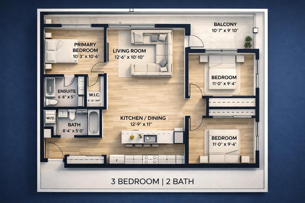Durable luxury vinyl plank flooring flows throughout, complemented by curated interior palettes and contemporary ceiling finishes. Enjoy outdoor relaxation and entertaining on your oversized private balcony. Built with quality construction standards including triple-pane windows, engineered floor systems, and enhanced soundproofing, this home offers comfort, quiet, and energy efficiency.