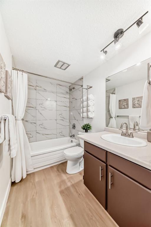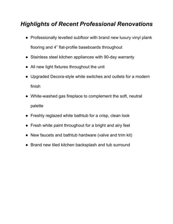 Freshly renovated 2-bedroom + versatile den condo in sought-after Varsity. From the moment you walk in, the space feels fresh, light, and airy. Updates include luxury vinyl plank flooring, new paint, updated tile and baseboards, modern lighting and faucets, a reglazed tub, and stainless steel kitchen appliances—creating a clean, contemporary, like-new feel throughout. The well-designed layout features a large primary bedroom that easily fits a king-size bed, a flexible den for a home office or extra storage, and a cozy stone-faced gas fireplace. Sliding patio doors open to a quiet, private balcony overlooking a peaceful courtyard with a peek-a-boo view of Market Mall.