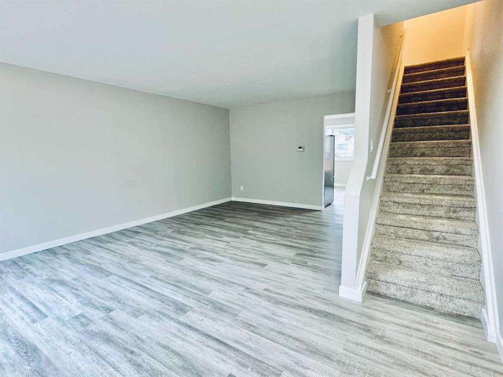WOW! This Fully Renovated Townhouse backs onto park offers beautiful views and sunny West exposure with plenty of natural light throughout. It also situated near schools, shopping centers and downtown. Recent renovations in March 2025 include a Brand New white Kitchen, New luxury vinyl plank flooring throughout main, New Carpet upstairs, New 4-piece Bathroom upstairs, New Interior and Exterior Paints, New Baseboard, and modern lighting throughout. Once you step into this home, you'll find a bright Living Room that flows seamlessly into the kitchen and dining area, perfect for families who like to entertain. Upstairs, the massive master bedroom easily accommodates king-sized furniture, 2 additional good-sized bedrooms with views next to luxurious 4-piece bathroom. The unfinished basement has a laundry area, newer furnace and hot water tank (both replaced in 2017). Step out onto your private patio looking out to the beautifully landscaped greenspace—a serene space to enjoy your morning coffee. This well-managed building has newer windows and 1 assigned parking. Whether you're a first-time buyer or an investor, this unit offers prime location near the Sunridge Mall, Airport and City Centre. Easy Access to Downtown, and major routes like Highway #1 and Deerfoot Trail. Don’t miss this home!