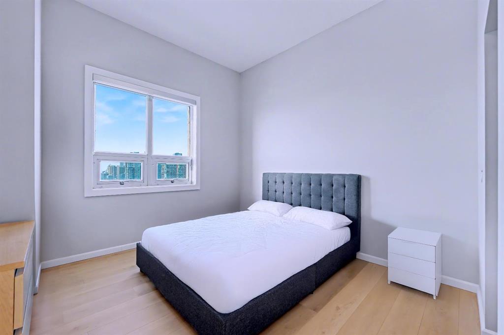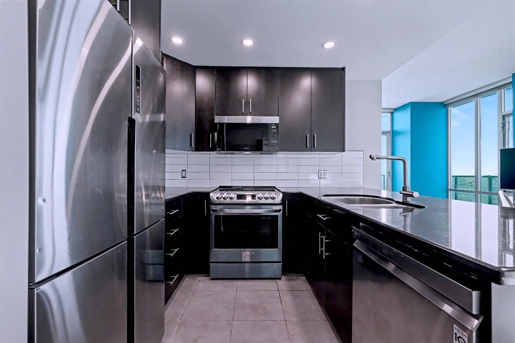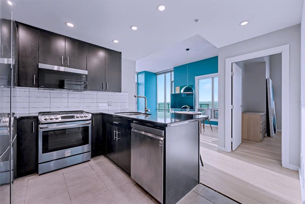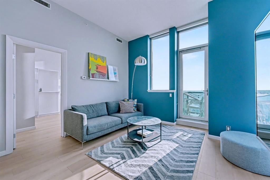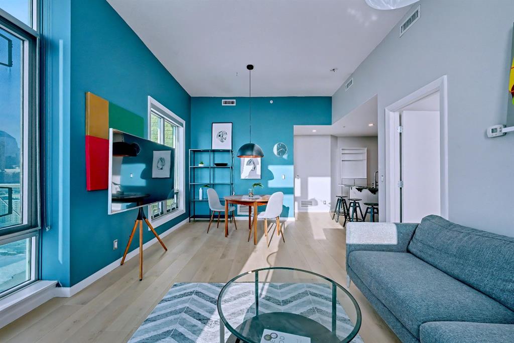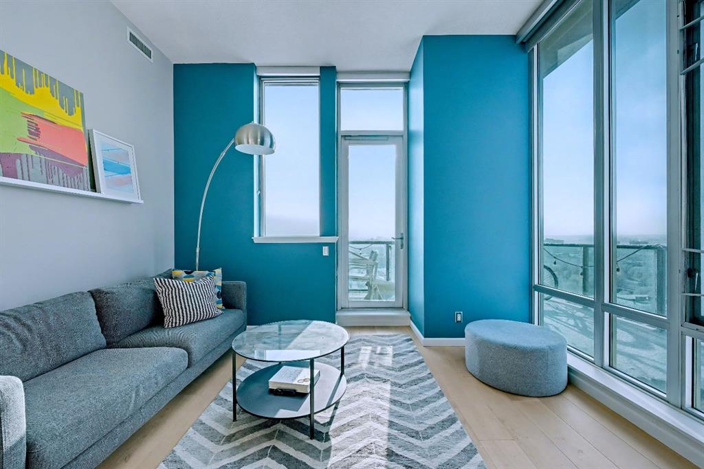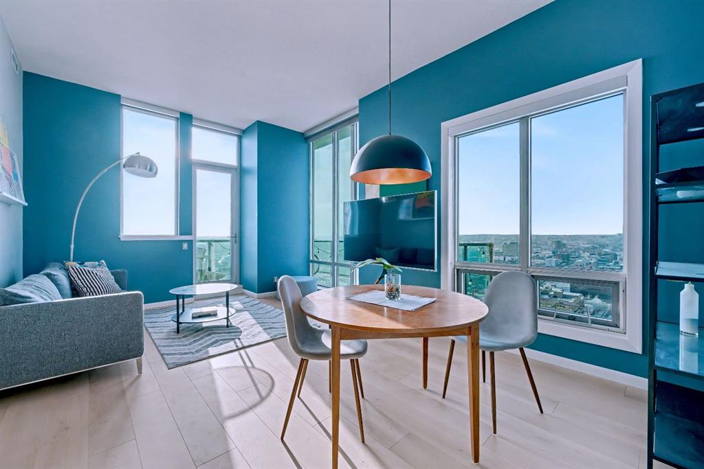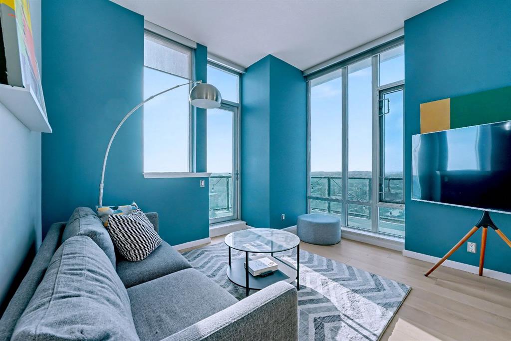 Upgraded 2 bedroom, 2 bathroom condo in the heart of Victoria Park, offering southwest corner 22nd-floor panoramic views of the Stampede Grounds, Elbow River, MOUNTAINS, and downtown. Bright, open-concept layout with OVER 10’ CEILINGS, FLOOR-TO-CEILING WINDOWS filling the space with natural light, updated paint and flooring, and a modern kitchen featuring granite counters, full-height cabinetry, white tile backsplash, and updated stainless steel appliances. Bedrooms on opposite sides include a primary with 4-piece ensuite, plus additional storage for convenience. Enjoy a private patio with GAS BBQ HOOKUP—perfect for outdoor entertaining. In-unit laundry, STORAGE, heated secured UNDERGROUND TITLED PARKING with bike rack, and access to a fitness facility, sauna, hot tub, and social room. Steps to C-Train, shopping, restaurants, and the Scotiabank Saddledome.