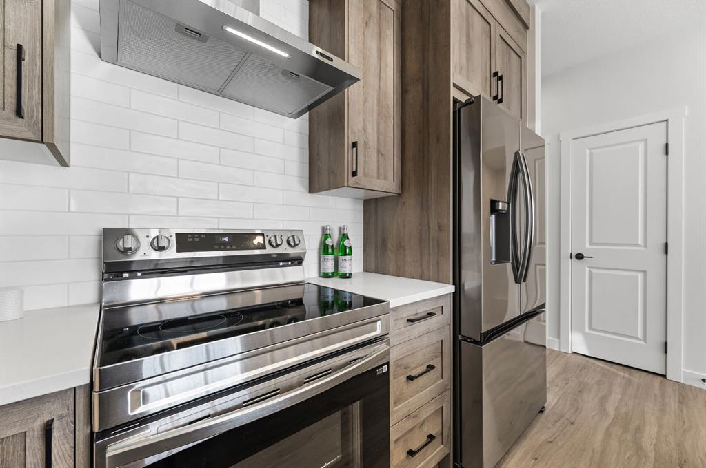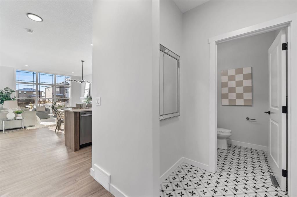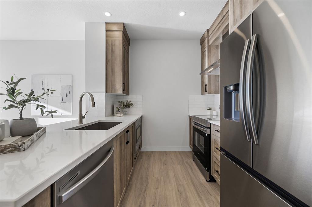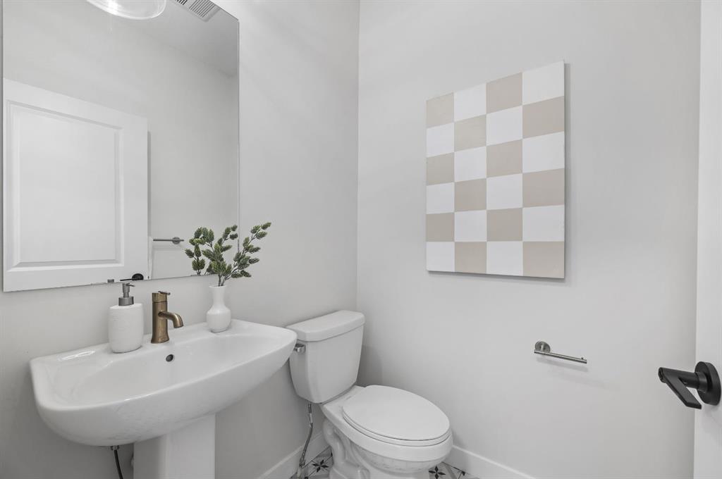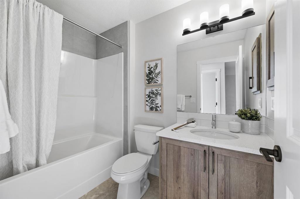 Genesis introduces the Jasper, a street-side luxury townhome with NO CONDO FEES! The Jasper townhome features an attached double garage, a rooftop patio, and low-maintenance living. The tastefully designed home offers over 1400 sq ft. of above-grade living space plus an unfinished basement with 9' ceilings, ready for your design ideas. On the main floor, you will find soaring ceilings in the open-concept living space and large windows that let natural light flow through. The chef-inspired kitchen offers sleek cabinetry and stone countertops and is well-equipped with stainless steel appliances. The kitchen is open to the dining and living room, perfect for entertaining family and friends. Complimenting the main floor is a convenient half bath, storage and entry from the attached 20 x 22 garage. Venturing upstairs, you will find a spacious primary retreat with a spa-like ensuite, a spacious shower, and a generous walk-in closet. Two additional bedrooms, a full bath, a 4-piece bath and laundry complete the upper level. Outside, enjoy spending time on your upper rooftop patio, which is situated above the garage. Bayview is a beautiful community with parks, benches and pathways that meander throughout the community and along the canals. Kids and adults alike will enjoy the outdoor basketball nets, gym, amphitheatre, and tennis courts, which convert into a skating rink in the winter. Come and see all the amenities the community offers for yourself! Area size was calculated by applying the RMS to the blueprints provided by the builder.