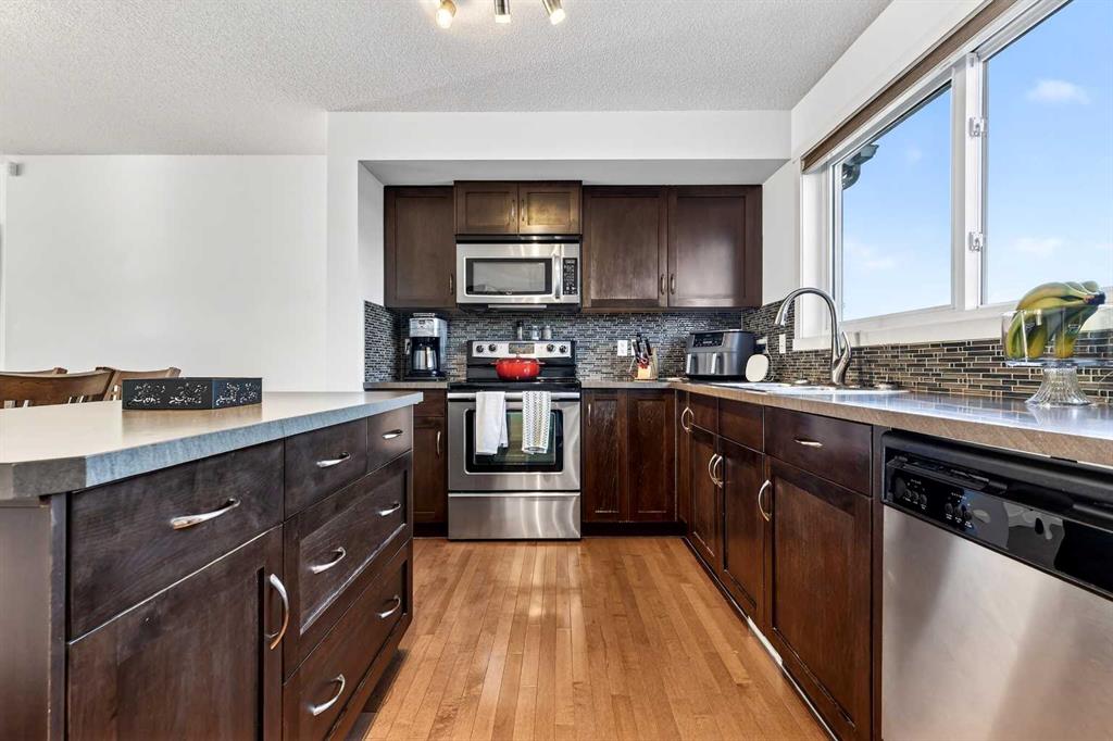 Ideally situated and just minutes from everyday amenities, this beautifully maintained townhome offers a well-designed, functional layout with a fully finished lower level and private rear yard. A bright main level features hardwood flooring, a well-equipped kitchen with an island and ample storage, and a dining room that openly communicates to the sunlit living room—ideal for both entertaining and everyday living. A convenient 2-piece bathroom, pantry, and mudroom complete this level. Upstairs, two spacious primary bedrooms impress with soaring ceilings and large walk-in closets. One features a private three-piece ensuite, while the other offers a four-piece ensuite. Completing the home is a fully finished lower level boasting a comfortable family room, additional bedroom, 4-piece bathroom, and laundry. Additional highlights include central air conditioning, a beautifully landscaped rear yard with charming garden beds, and a detached double garage providing extra storage and winter convenience. Enjoy all that Walden has to offer, including nearby schools, parks, playgrounds, walking paths, and quick access to Fish Creek Provincial Park, shopping, dining, and major roadways such as Stoney Trail, Macleod Trail, and Deerfoot Trail. This is an exceptional place for you to call home!