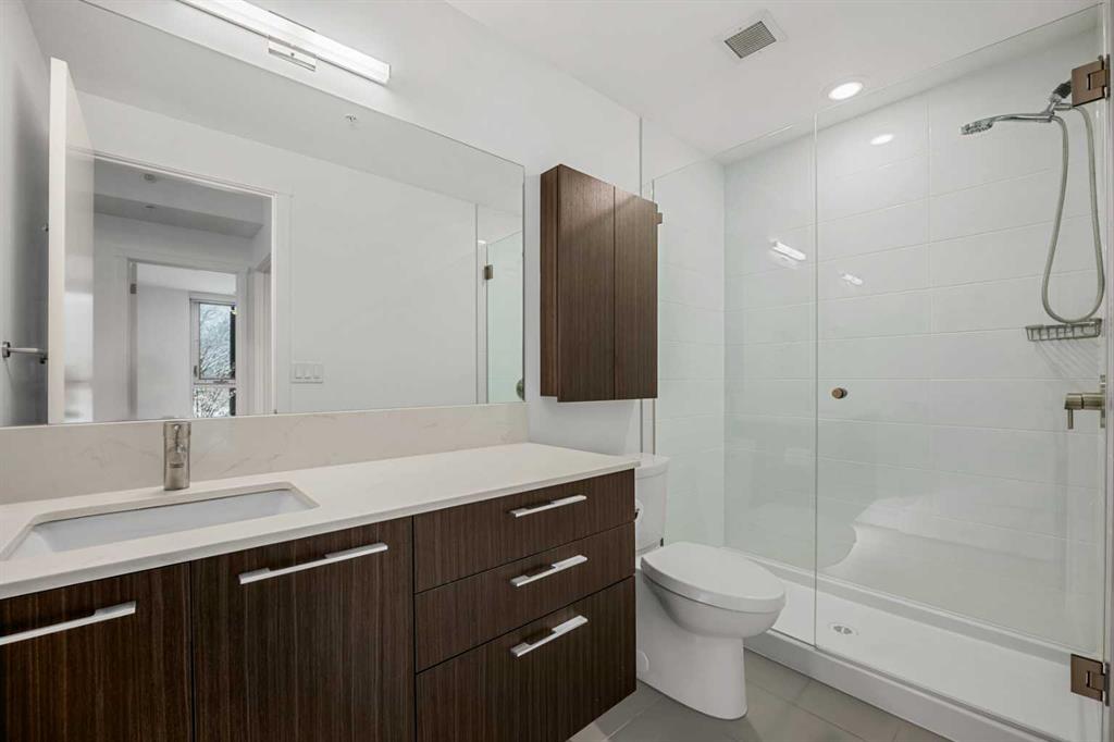 The bedroom is well proportioned, offering a calm retreat with ample closet space and easy access to the stylish bathroom, which features modern finishes and a streamlined design. In-suite laundry adds everyday practicality, making the home as functional as it is attractive.