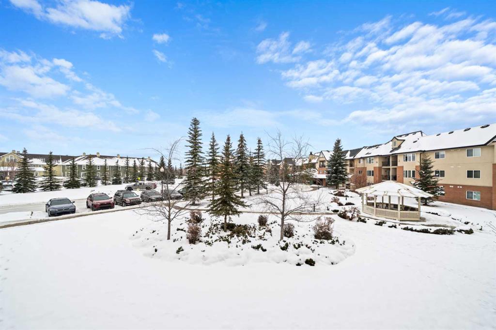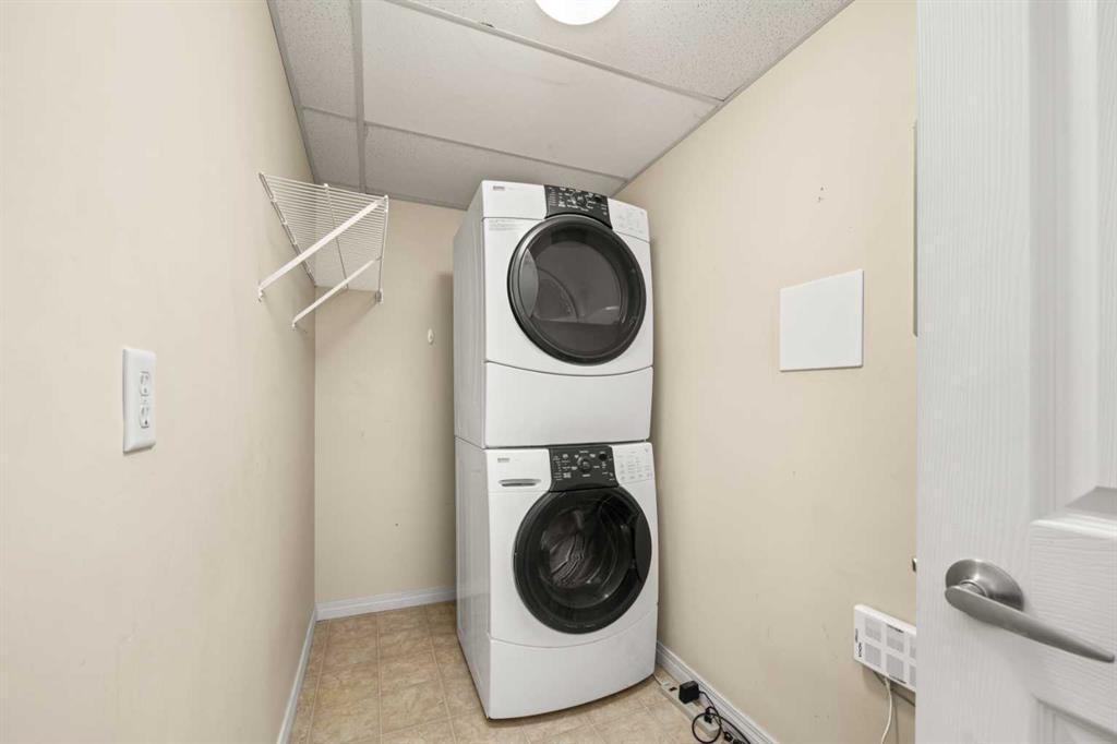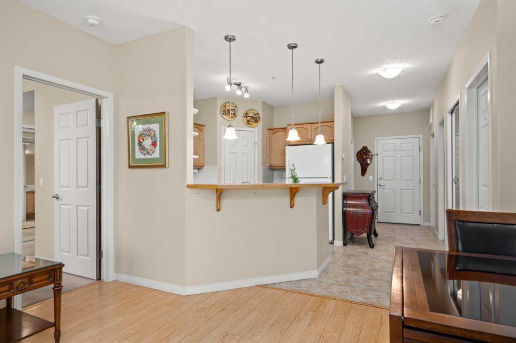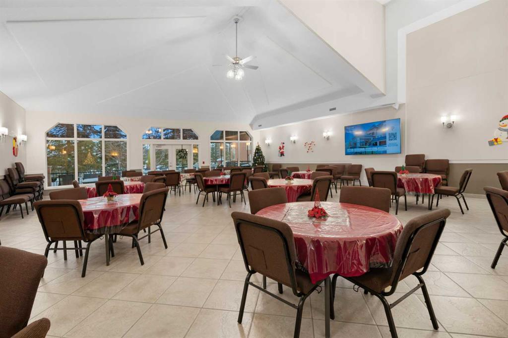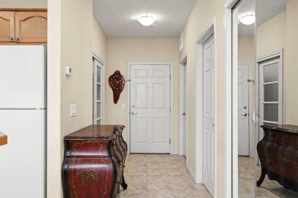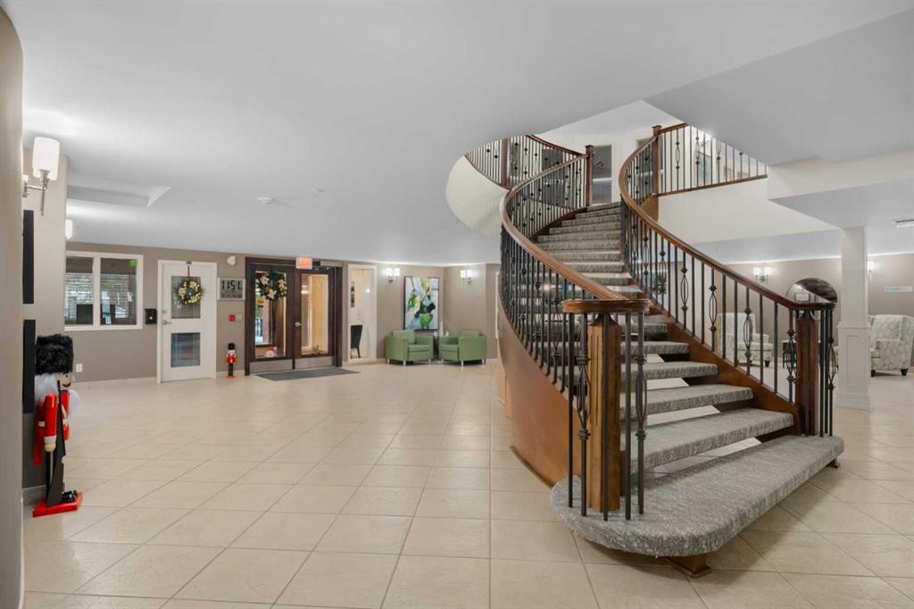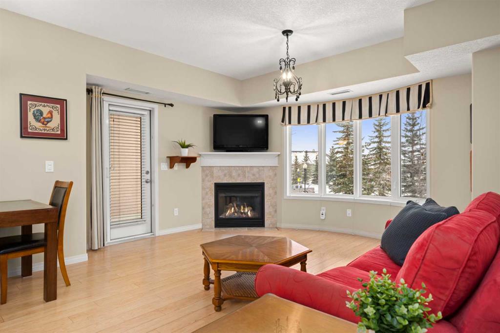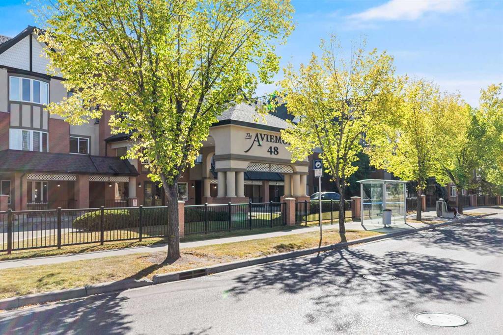 Welcome to The Aviemore, McKenzie Towne’s premier 55+ community. This bright and spacious 2-bedroom plus den, 2-bathroom home offers 1,089 SqFt of well-designed living with a quiet, private setting overlooking the courtyard. The thoughtful layout begins with a welcoming front foyer, where the laundry room sits to one side and a dedicated den to the other, creating a practical, organized entry before the floorplan opens into the main living space. The kitchen features maple cabinetry, crisp white appliances, a full pantry, plenty of counter space, and a raised breakfast bar, and it flows seamlessly into the open-concept living room anchored by a charming corner gas fireplace. Just off the living area, the covered south-facing balcony provides a peaceful outdoor retreat with lovely natural light and serene views. The primary bedroom is impressively large and includes walk-through closets leading to a spacious ensuite with double sinks, a deep soaker tub, and a separate stand-up shower. A second bedroom, full main bathroom, excellent in-suite storage, and a location just steps from the elevator all add to the day-to-day comfort of this home. Additional conveniences include a titled underground parking stall located close to the elevator, an assigned storage cage directly in front of the stall, central air conditioning, and condo fees that include all utilities aside from electricity. Residents of The Aviemore enjoy outstanding amenities such as a party room, theatre, and library on the main level; a fitness centre with steam sauna, games room, puzzle room, and two guest suites on the second level; and a wood shop and convenient car wash bay on the parkade level, along with beautifully maintained outdoor spaces and ample visitor parking. The building is pet-friendly with Board approval (one small dog or cat under 20 lbs). Ideally located just steps from the shops, restaurants, and services of High Street, as well as nearby Safeway, Walmart, transit, walking paths, and Inverness Pond - with quick access to Deerfoot and Stoney Trail - this quiet, private, beautifully maintained home offers an exceptional lifestyle in one of Calgary’s finest adult communities.
