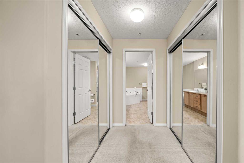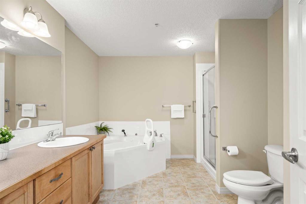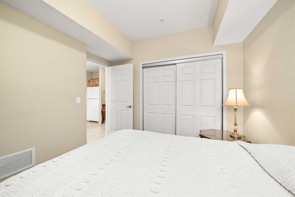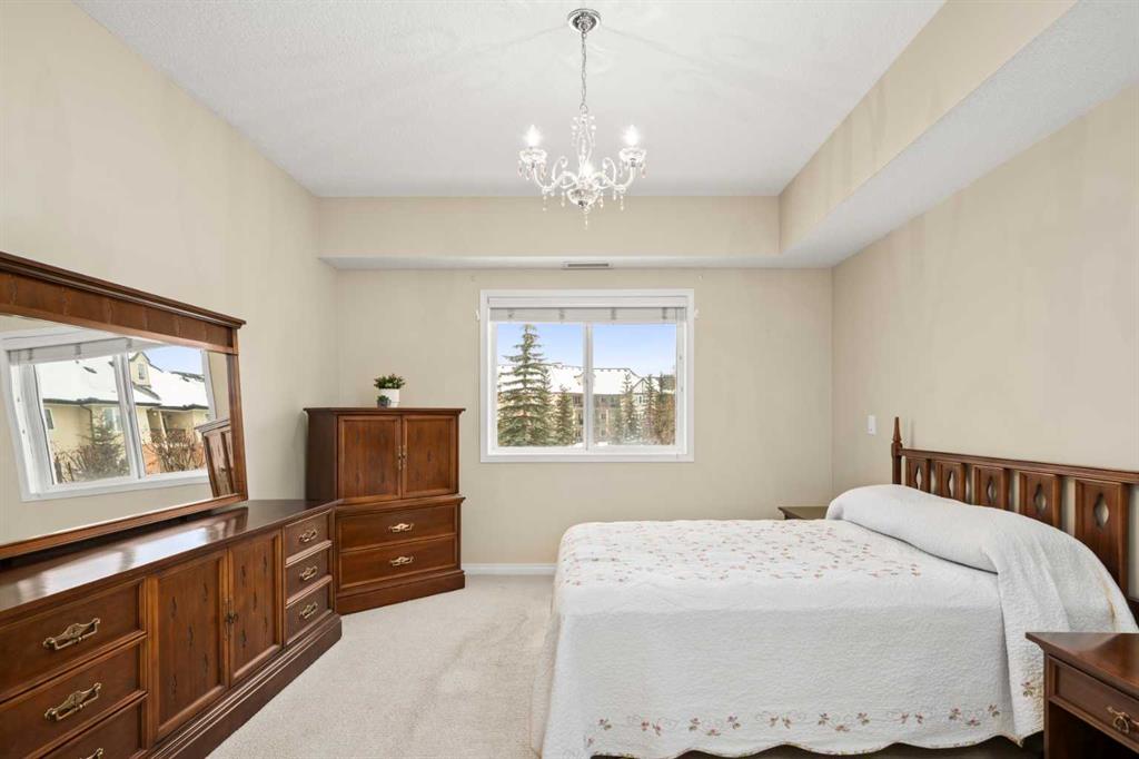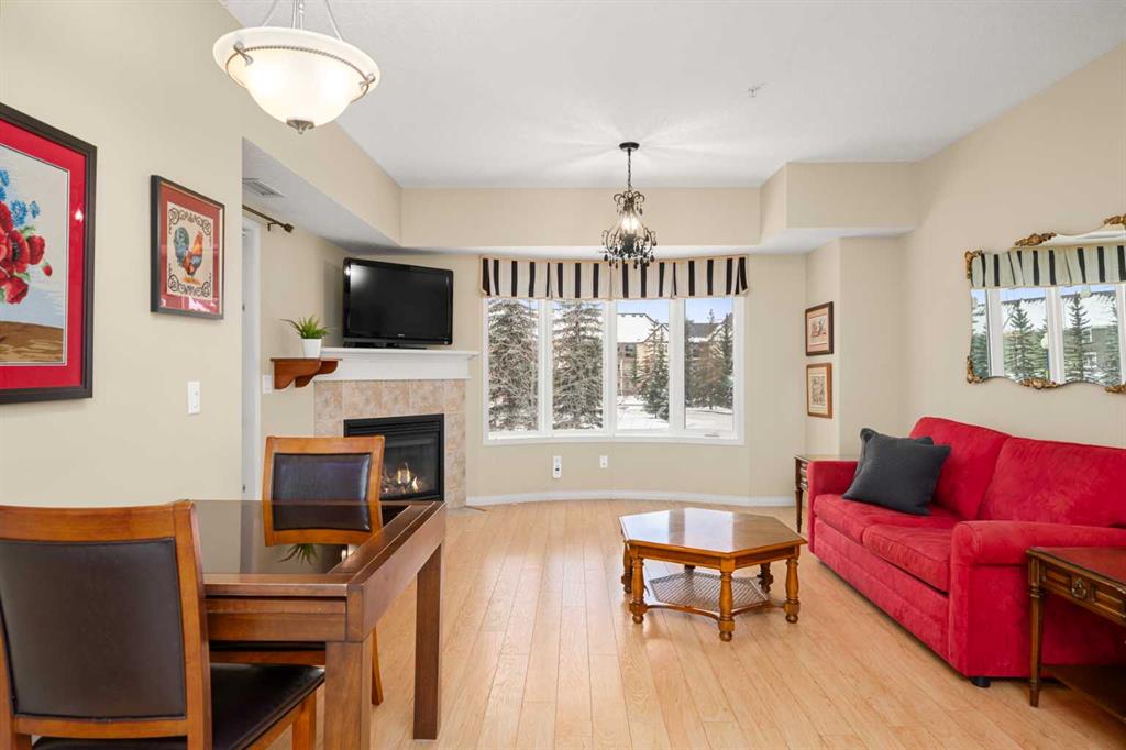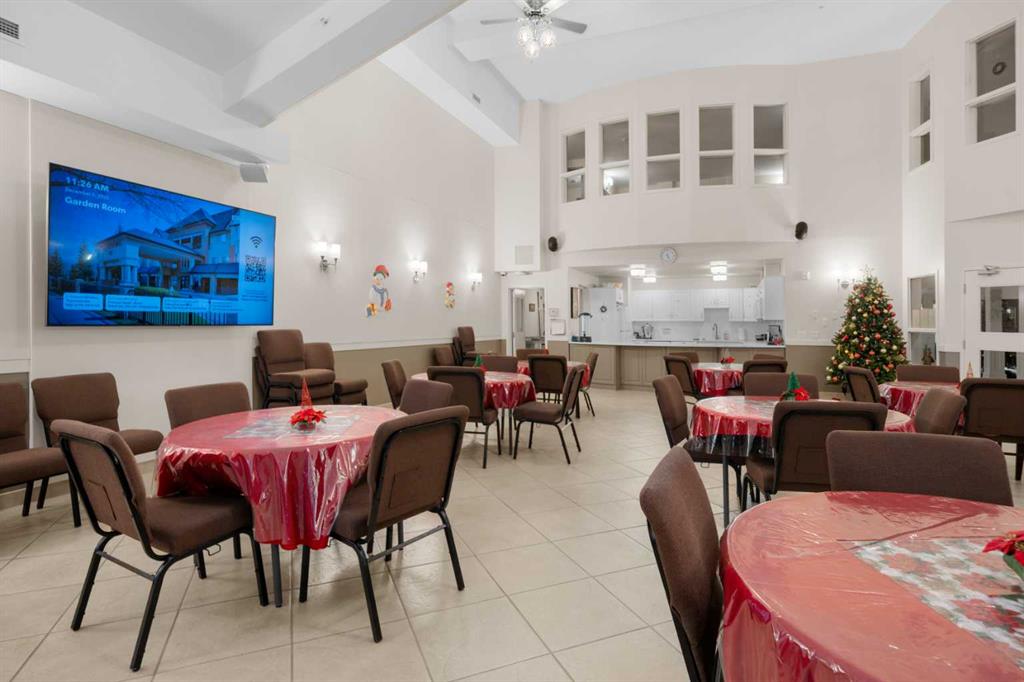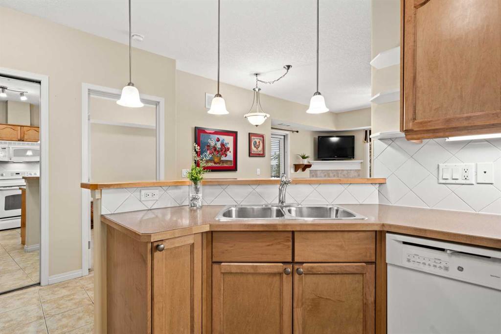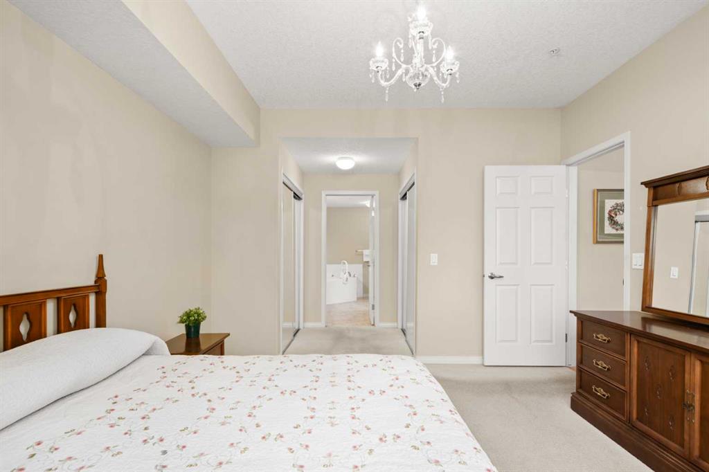 Welcome to The Aviemore, McKenzie Towne’s premier 55+ community. This bright and spacious 2-bedroom plus den, 2-bathroom home offers 1,089 SqFt of well-designed living with a quiet, private setting overlooking the courtyard. The thoughtful layout begins with a welcoming front foyer, where the laundry room sits to one side and a dedicated den to the other, creating a practical, organized entry before the floorplan opens into the main living space. The kitchen features maple cabinetry, crisp white appliances, a full pantry, plenty of counter space, and a raised breakfast bar, and it flows seamlessly into the open-concept living room anchored by a charming corner gas fireplace. Just off the living area, the covered south-facing balcony provides a peaceful outdoor retreat with lovely natural light and serene views. The primary bedroom is impressively large and includes walk-through closets leading to a spacious ensuite with double sinks, a deep soaker tub, and a separate stand-up shower. A second bedroom, full main bathroom, excellent in-suite storage, and a location just steps from the elevator all add to the day-to-day comfort of this home. Additional conveniences include a titled underground parking stall located close to the elevator, an assigned storage cage directly in front of the stall, central air conditioning, and condo fees that include all utilities aside from electricity. Residents of The Aviemore enjoy outstanding amenities such as a party room, theatre, and library on the main level; a fitness centre with steam sauna, games room, puzzle room, and two guest suites on the second level; and a wood shop and convenient car wash bay on the parkade level, along with beautifully maintained outdoor spaces and ample visitor parking. The building is pet-friendly with Board approval (one small dog or cat under 20 lbs). Ideally located just steps from the shops, restaurants, and services of High Street, as well as nearby Safeway, Walmart, transit, walking paths, and Inverness Pond - with quick access to Deerfoot and Stoney Trail - this quiet, private, beautifully maintained home offers an exceptional lifestyle in one of Calgary’s finest adult communities.