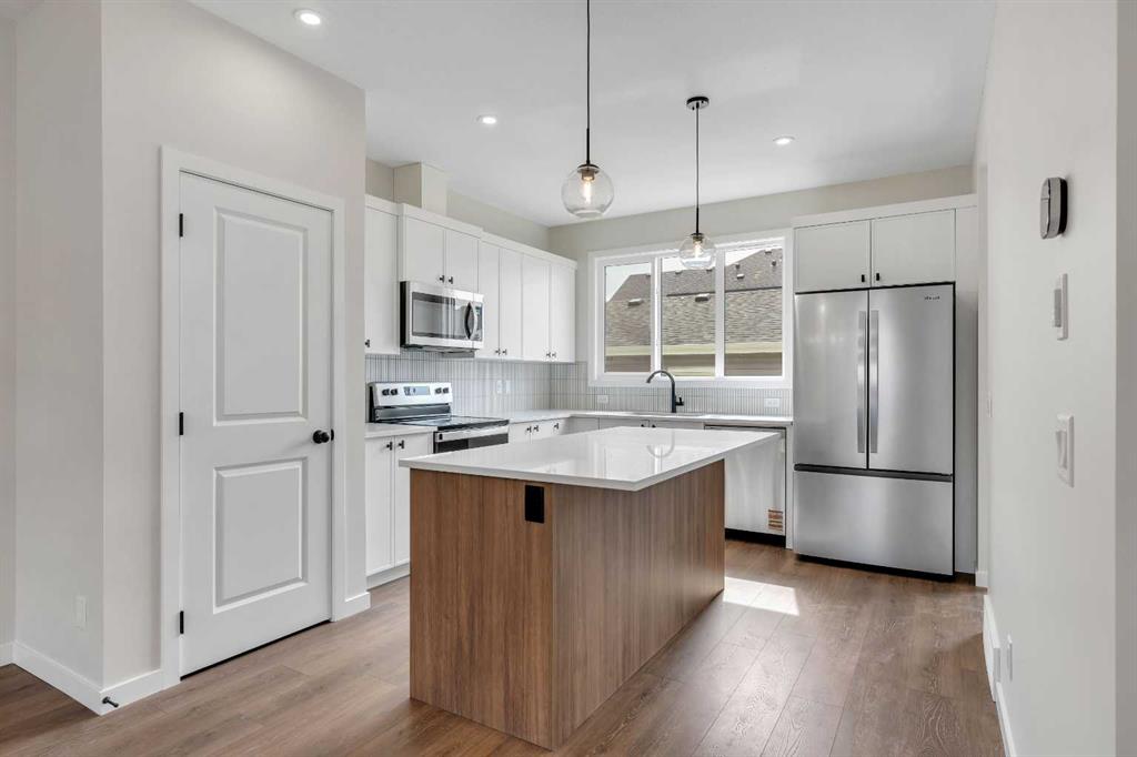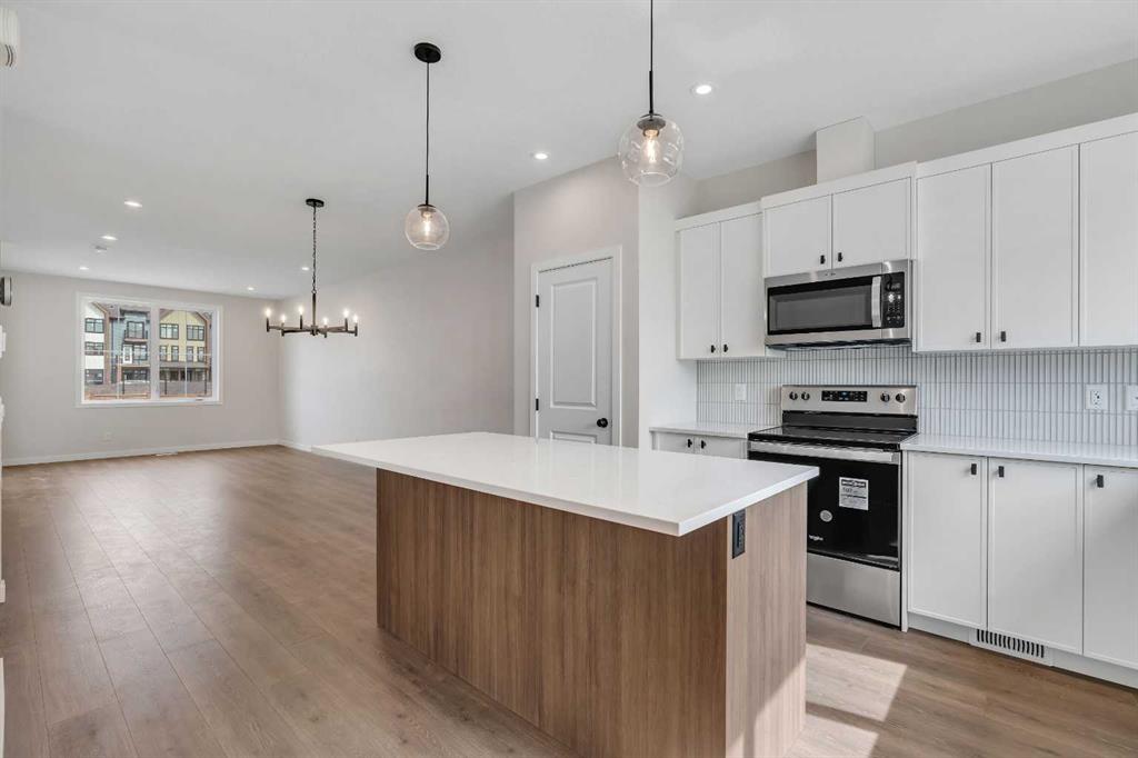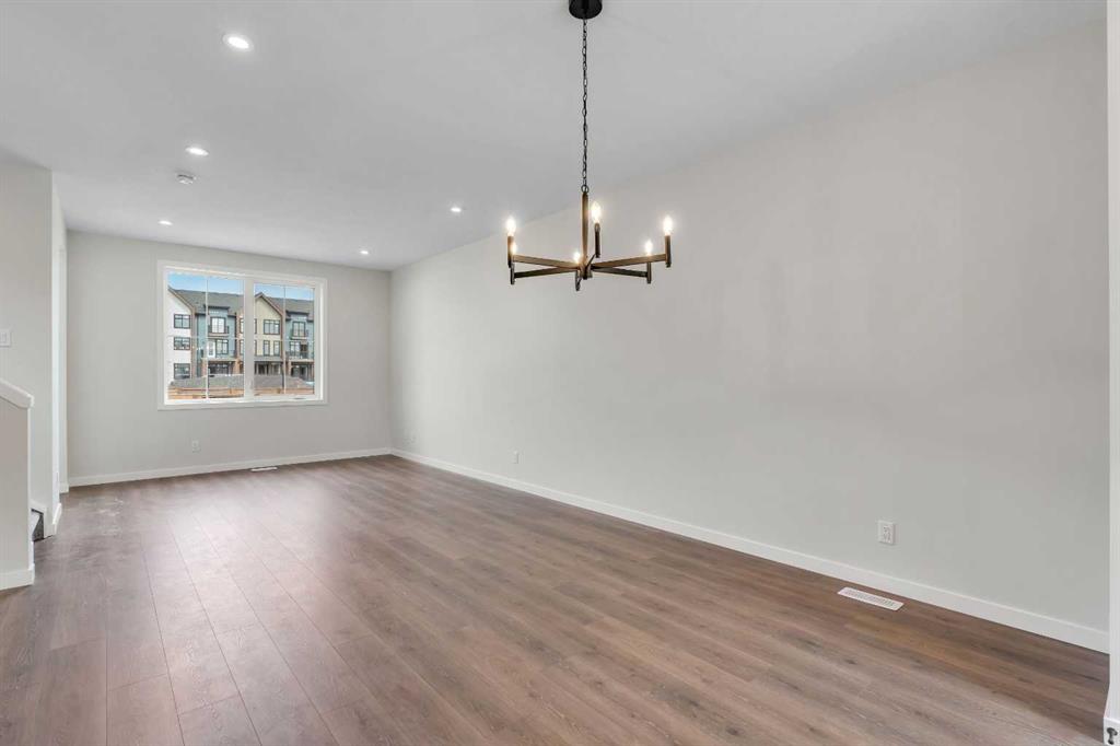 Welcome to 225 Heirloom Way SE, an exciting opportunity to purchase a brand new Heirloom Street townhome by Baywest Homes in the highly sought-after community of Rangeview. Presenting The Viola A model, this home offers a charming farmhouse-inspired exterior and an elegant interior featuring finishes handpicked by a professional interior designer. The layout is designed with the modern family in mind, offering an open concept on the main floor with 9-foot ceilings throughout. The main floor is highlighted by beautiful hardwood-inspired LVP floors, a gallery-style kitchen with quartz countertops, a sleek stainless steel appliance package, abundant cabinetry and counter space, and a spacious island with an eating bar. The living room, situated at the front of the home, is bright and airy with large, sunny windows. Just off the dining room, the mudroom and backdoor lead out to a private backyard and an oversized single detached garage. A half bath completes the main level. Upstairs, you’ll find 3 bedrooms, 2 bathrooms, and convenient laundry. The generously-sized primary bedroom includes its own 3-piece ensuite with a large shower. The remaining two bedrooms are located at the back of the home and share a full bathroom. The home also features an undeveloped basement, offering ample space for future development, including additional bedrooms, a bathroom, family room, or storage. This townhome is an end unit, offering the added benefit of a side door, and boasts a private South-facing backyard. It is ideally located across from the new community greenhouse and fronts onto the future community gardens. You won’t want to miss this one, as it’s one of the final opportunities to own a property directly across from the upcoming greenhouse. Additional inclusions are the front landscaping, designer-curated palette with upgraded finishes at no extra cost. The builder also includes one side of fencing for your private backyard. Rangeview is Calgary’s first Garden-to-Table Community, thoughtfully designed to inspire food-centered living. With walkable streets, open spaces, and vibrant gardens, it’s the perfect environment for neighbors to gather and connect. Residents can enjoy walking, jogging, or cycling through the community’s network of pathways and linear parks. Future plans include over 23 acres of reconstructed wetlands and ponds, creative playgrounds, outdoor classrooms, interpretive areas, and more. The food-producing gardens, orchards, and greenhouse will bring residents together to celebrate food and nature. The heart of Rangeview will be the Market Square, a lively space for community events, food markets, and celebrations, complete with open lawns and playgrounds. Plans for an Urban Village with restaurants, boutiques, and services will enhance the sense of community. **Photos are of the Showhome and may not exactly represent the finished product.
