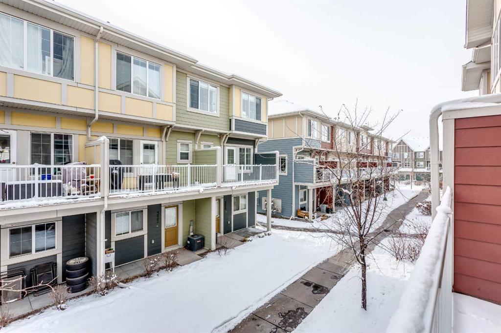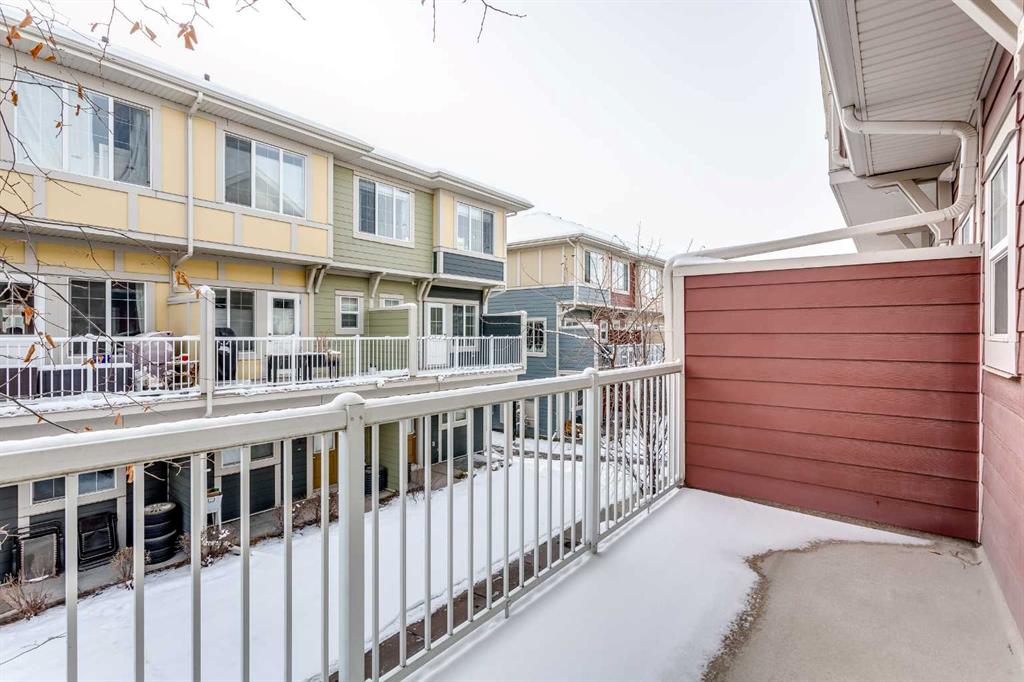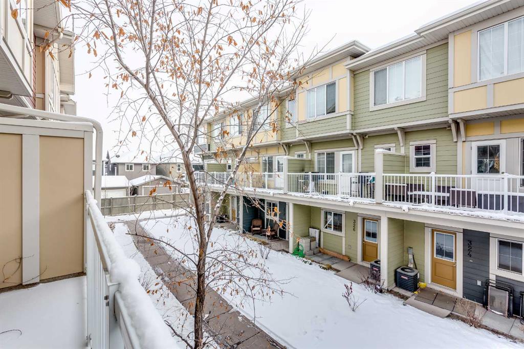 DOUBLE ENSUITE | TANDEM GARAGE | Welcome to the Ebony Townhomes in Mahogany! Here is your opportunity to own in one of Calgary's most desired communities. This 2 Bed 2 and a half bath townhome offers you an incredibly well maintained living space with ample natural light. Above the front foyer with garage access, the main living area is well thought out with a 2-piece bathroom, kitchen nook with balcony access and a massive center island with plenty of cupboard space. Upstairs provides you 2 large bedrooms, each with their own 4-piece ensuite bath making this a perfect living situation for a small family or first time buyer with a roommate! Laundry can also be found conveniently located on the upper floor taking the hassle out of laundry day. If you're looking for a workshop or extra parking the 35 foot long tandem garage has you covered! This unit is turnkey and ready to move into. Book your viewing today and see how well maintained this unit, complex and the surrounding area are!